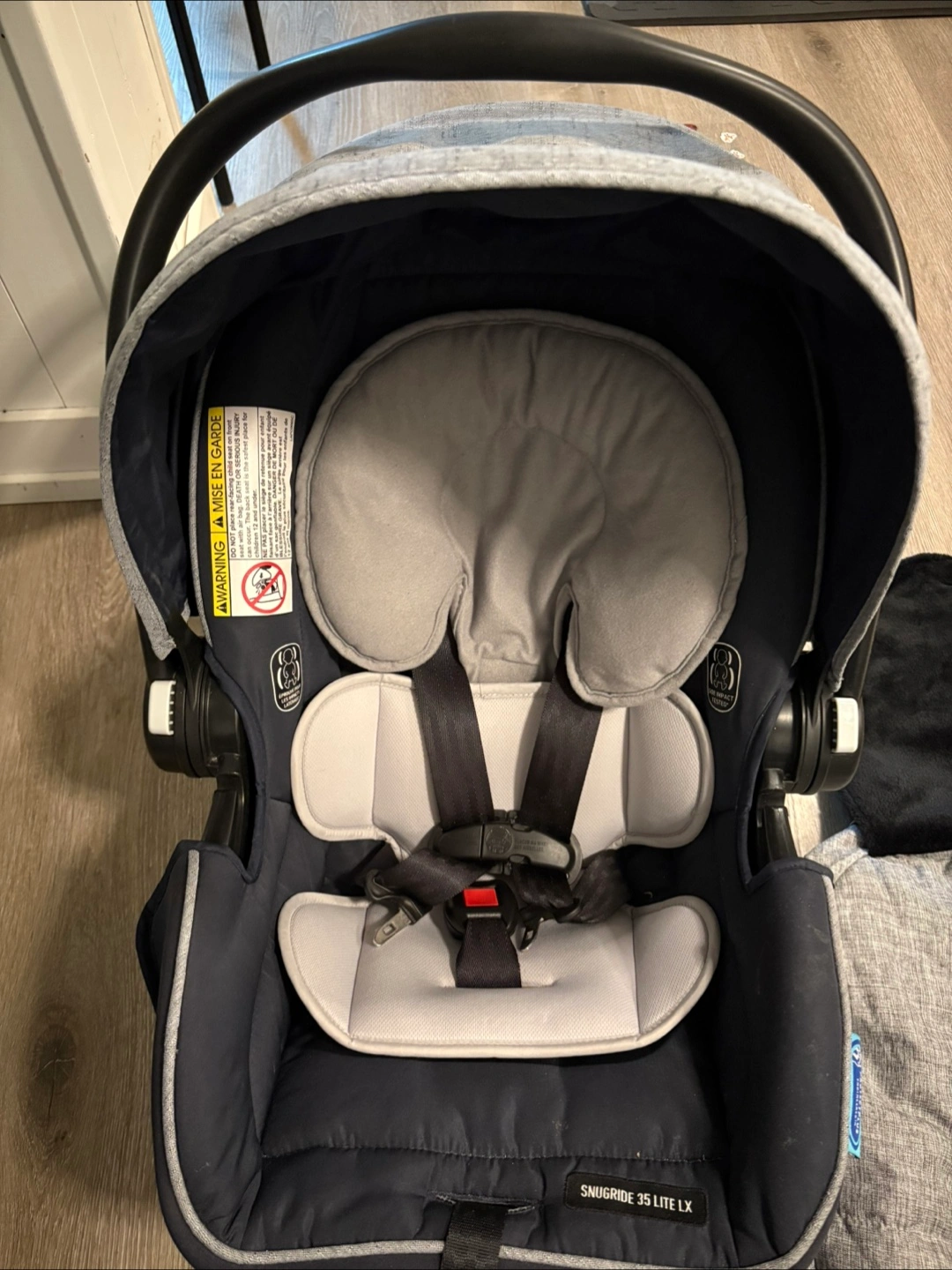 I'm selling a Graco SnugRide 35 Lite LX infant car seat. It's in great condition and includes the base and infant insert. This car seat is lightweight and easy to carry, making it perfect for parents on the go! Graco Snugride 35 Lx Lite Car seat for sale! For $95 Graco Infant Car Seat + Base + Winter Cover + Head Support – Excellent Condition Gently used Graco infant car seat from 2021, in excellent condition. Includes: ✅ Secure base ✅ Cushioned infant head support ✅ Warm, cozy winter cover (used for one winter, amazon price $39) ✅ All straps and padding intact ✅ From smoke-free, pet-free home ✅ Never in an accident Manufacture date: 12/25/2020 Expiry: 12/25/2027 $95 Ready to use and super comfy for your little one! 📍Pickup in Georgetown