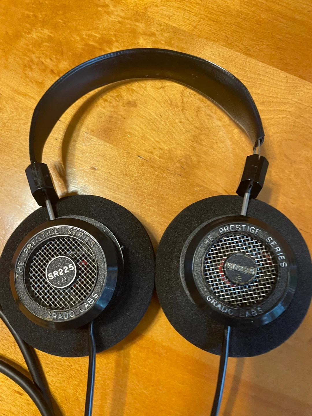 Selling a pair of Grado Labs SR225e headphones. They're in good condition and sound great! Perfect for audiophiles or anyone who appreciates high-quality audio