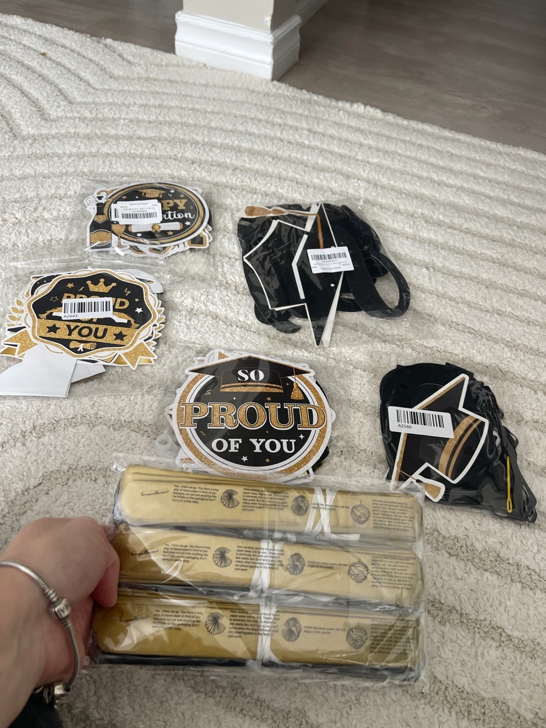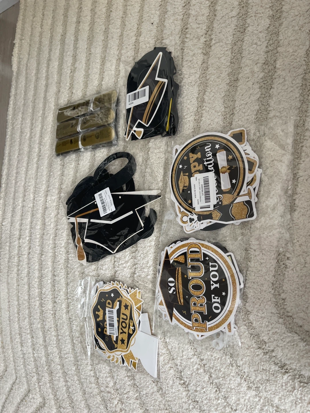 Selling a sets of graduation party decorations, including photo booth props and hanging swirls! Perfect for celebrating a recent grad