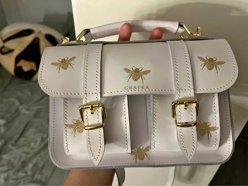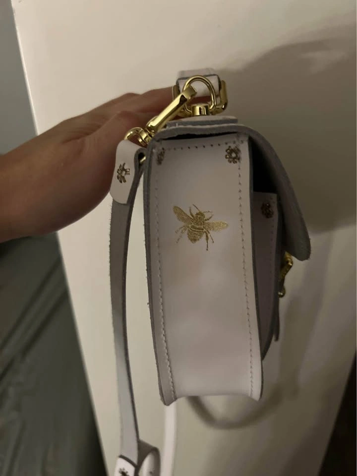 Bought this from Grafea on August last year. 100% leather, bee prints. Used a few time. Comes with straps.