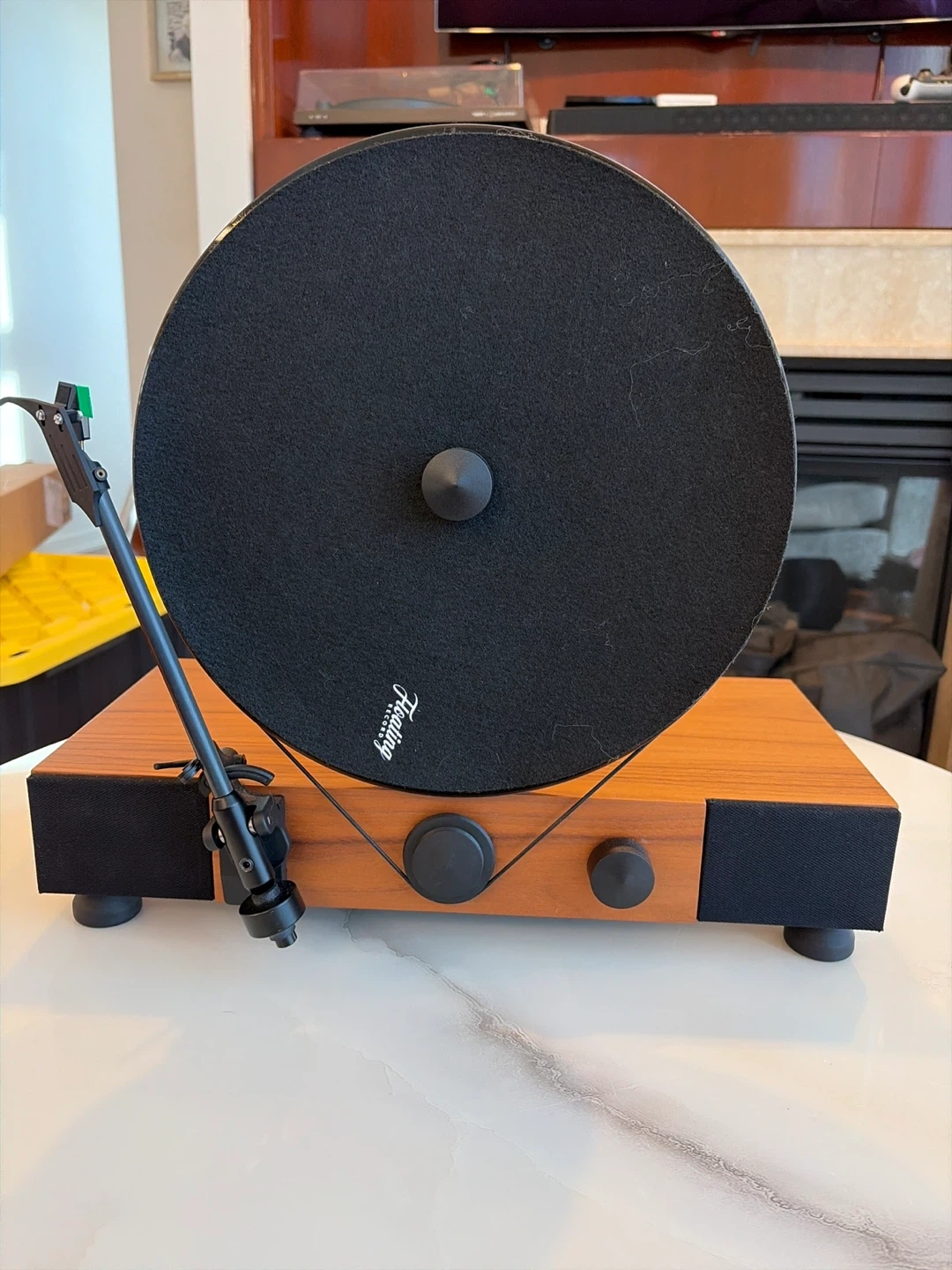 Selling a Gramovox Floating Record Vertical Turntable! This unique turntable plays your records vertically, making it a real conversation starter. It's in great condition and ready to bring some retro vibes to your music listening experience. Needle needs to be replaced