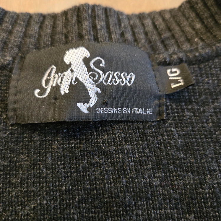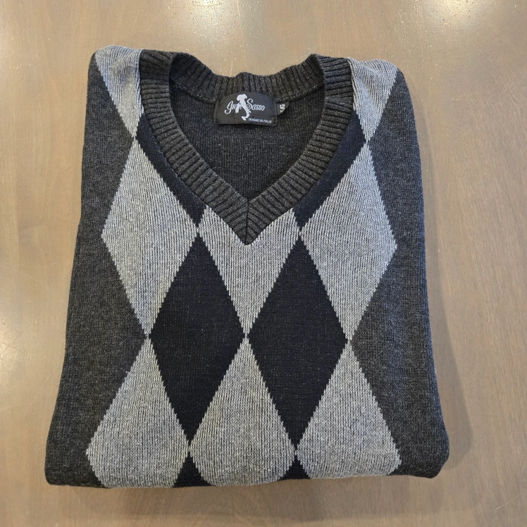 Exquisite Gran Sasso argyle sweater in size large! features a classic V-neck design. The sweater is made in Italy.