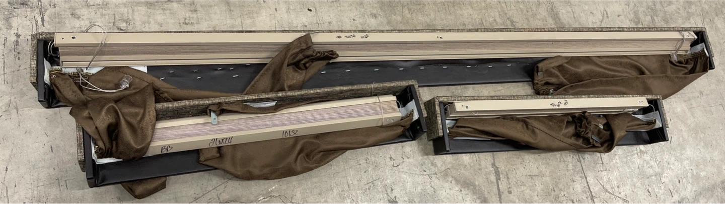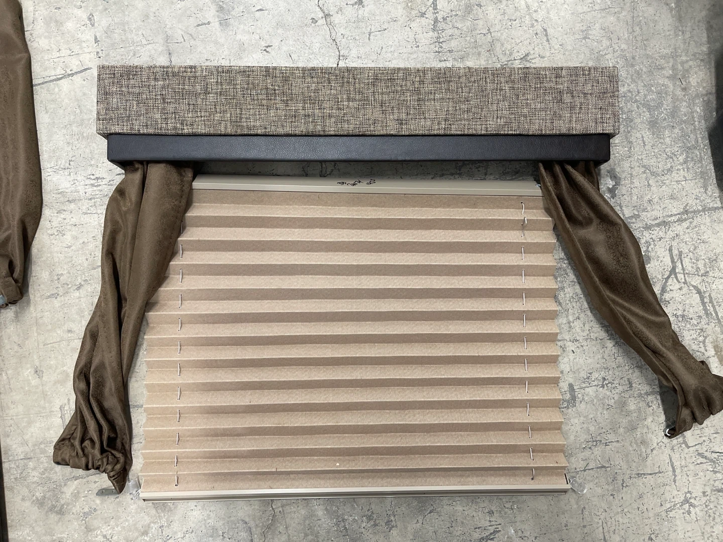 Selling a set of brown window blinds. The dimensions of one blind are approximately 74x30. There are also two 26x24 sets available. Great for adding some privacy and style to your trailer or home