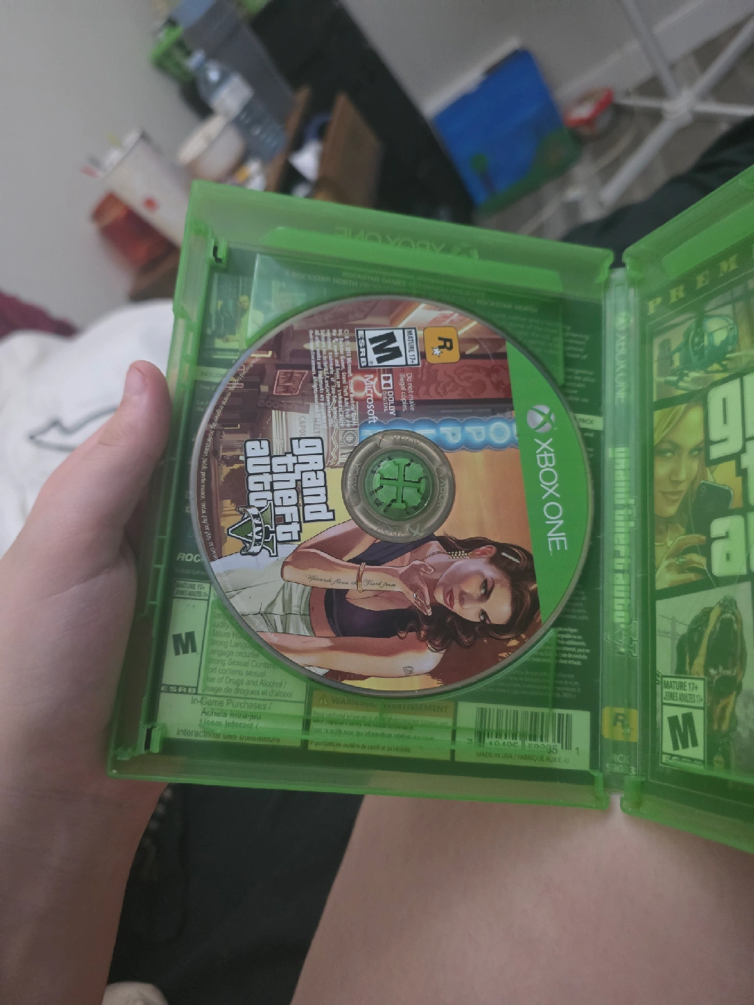 Selling Grand Theft Auto V for Xbox One! The disc is in great condition and ready for a new player. Hours of open-world fun await you!- it works for xbox X too ((: