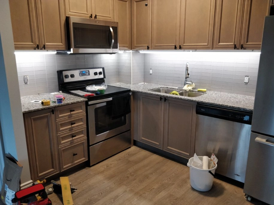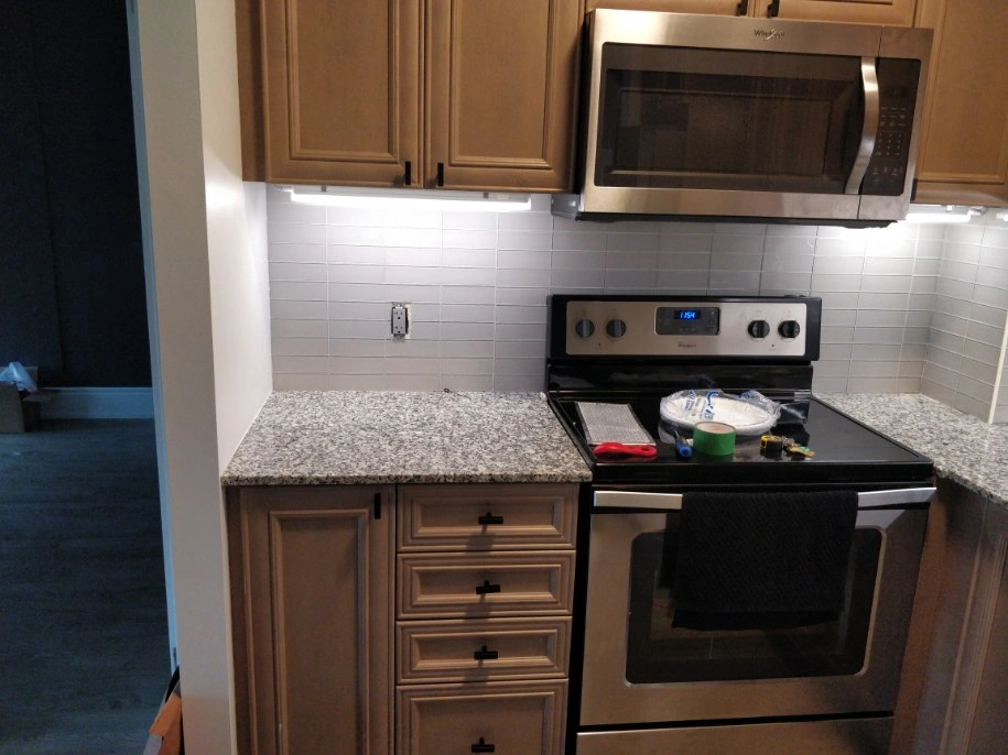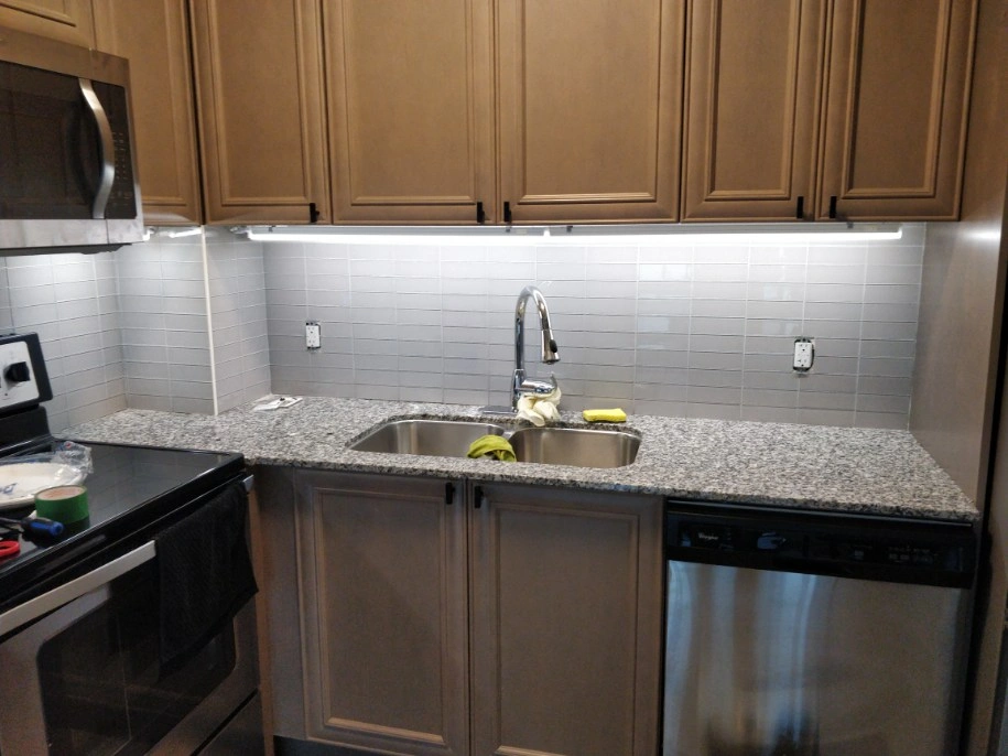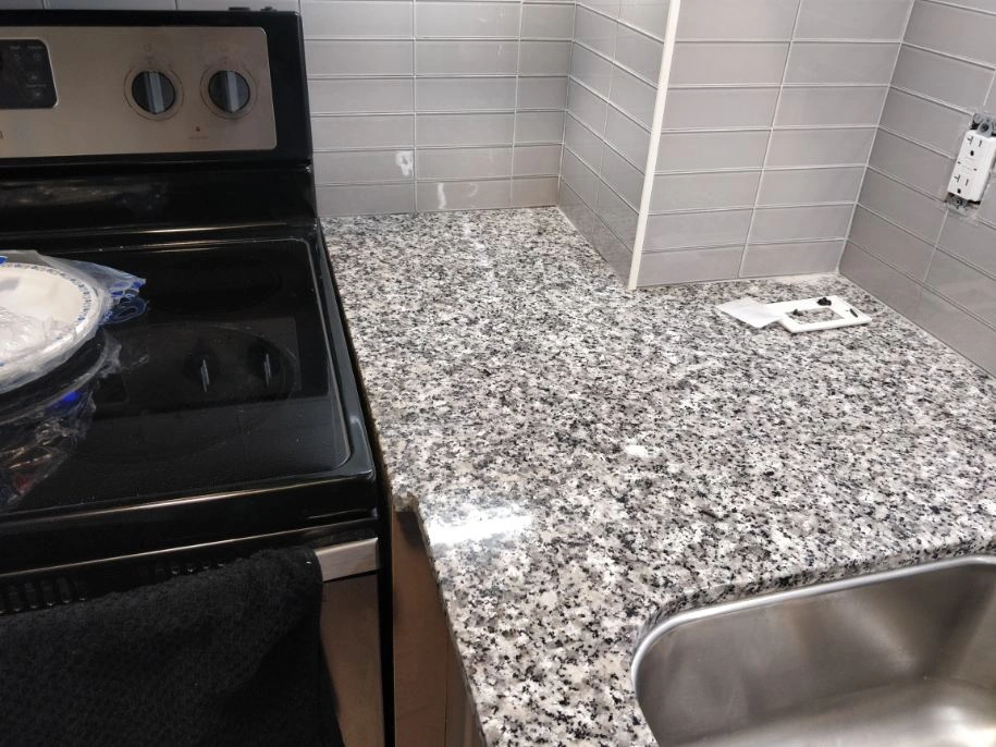 granite counter top including sink and faucet. there are no major issues, just renovated the kitchen. dimensions: 29 inch to the left of stove 88 1/2 inches other long peice wall to fridge pillar 12 inches by 12 1/4 (sink side) 25 7/8 depth 26 5/8 depth beside stove (sink side)