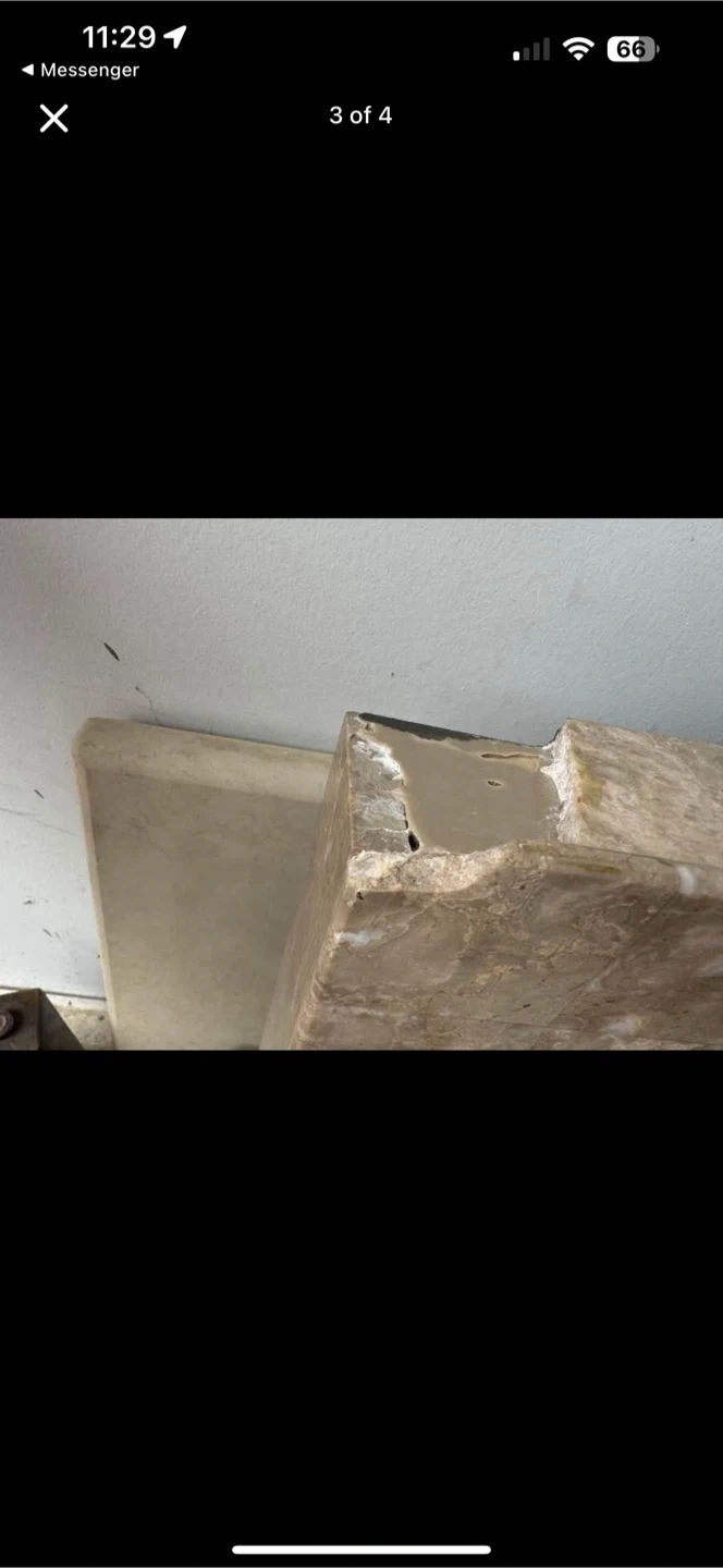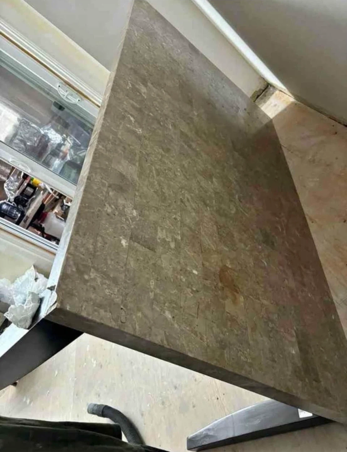 Selling a granite stone slab table. It has some wear and tear. Used as dining table. Can be filled easily, we haven’t gotten around to it. Very heavy and granite.