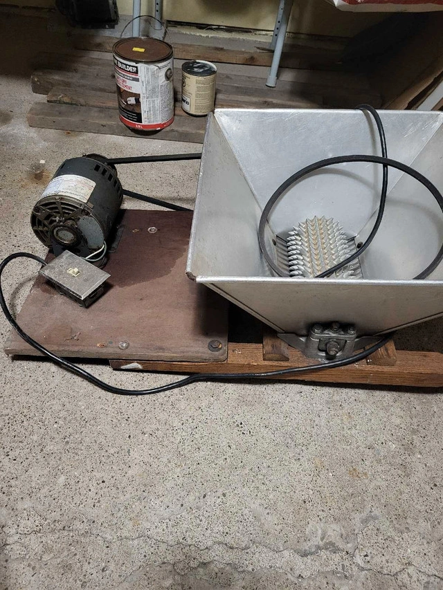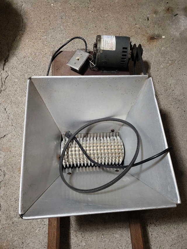 I am selling a used grape crusher, perfect for winemaking enthusiasts! This robust machine efficiently crushes grapes to prepare them for fermentation. While it shows signs of use, it's in good working condition and ready to help you create delicious homemade wine. Additional details: * Durable with electric motor * Efficient crushing mechanism * Easy to operate * Compact design for easy storage. If you're seeing this ad, the grape crusher is still available.