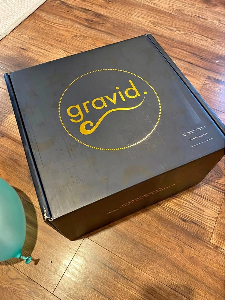 Color: grey. King size 98"x90". Weight: 35lbs. Used only a handful of times, Gravid Weighted Blankets help you reduce racing thoughts so you can fall asleep quickly and stay asleep through the night. Set includes one Gravid Weighted Blanket 3.0 and one Breeze™ Cooling Cover. $450 new.