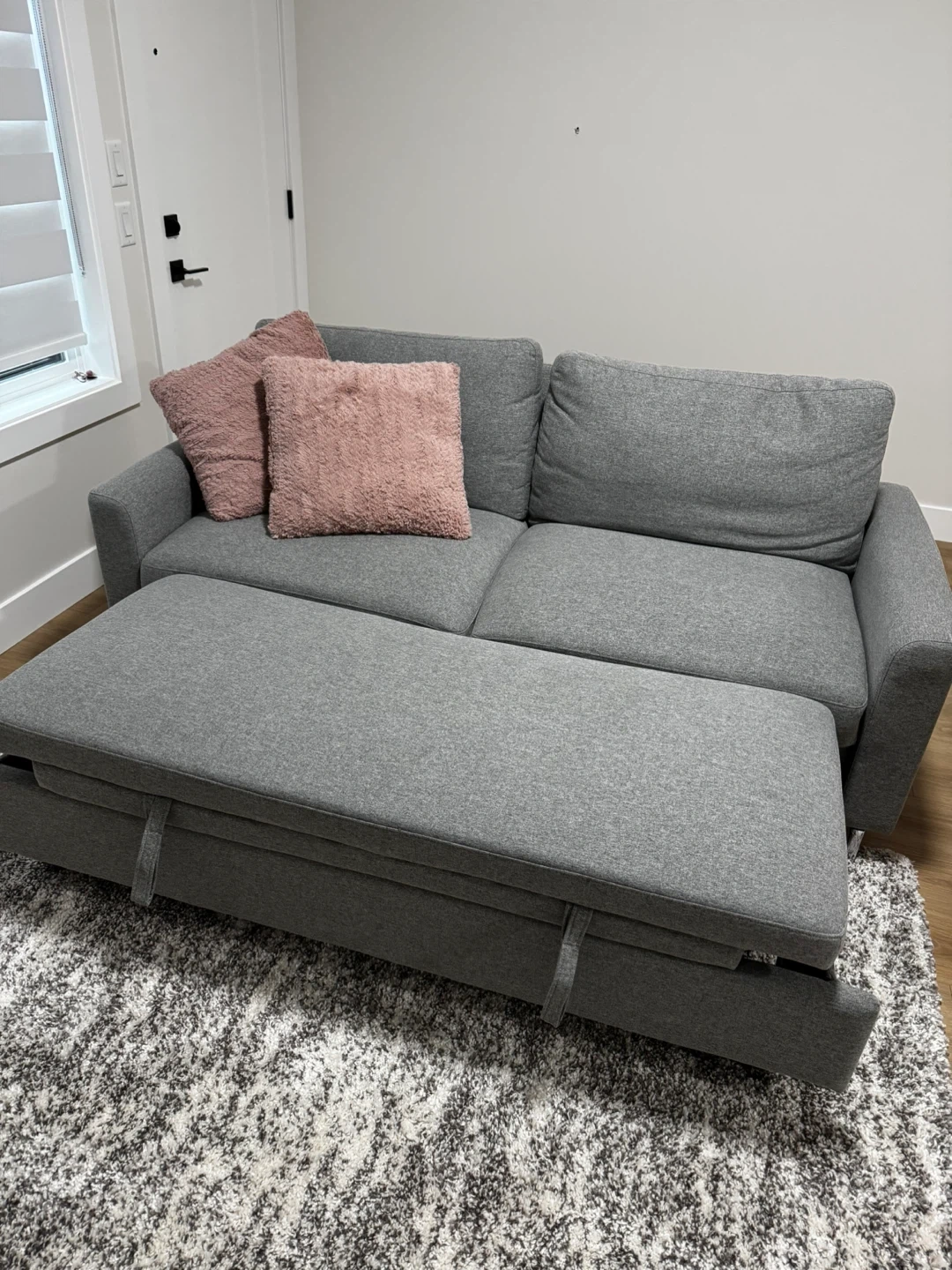 Selling a gray sleeper sofa in great condition! It easily converts into a bed, perfect for guests or small spaces. The sofa includes comfortable cushions and a pull-out mechanism that works smoothly. It's a stylish and functional addition to any living room From The Brick Pick up in Mill Lake