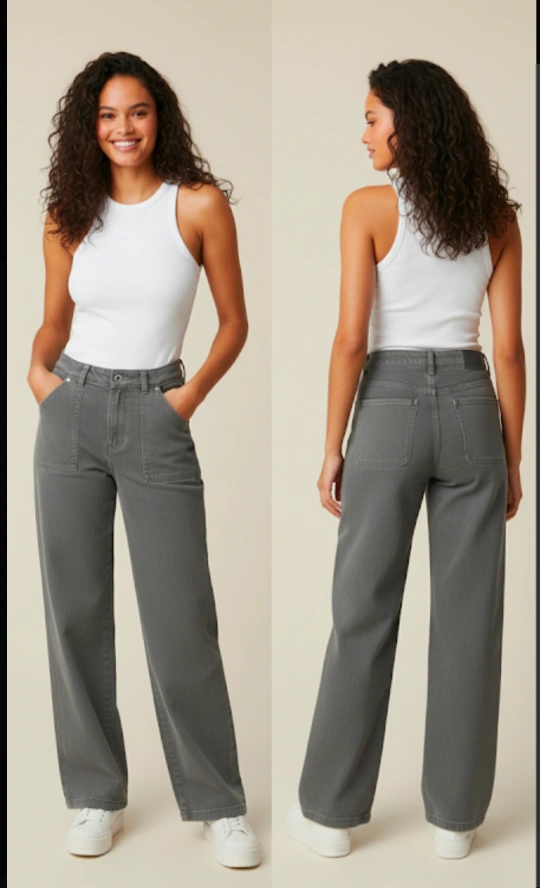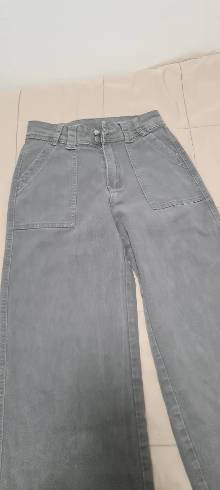 Selling a pair of Gray Flared Jeans – Medium 💫 . These pants are in great condition and feature a stylish wide-leg design with cargo pockets. The colour is a versatile grey. They are made from comfortable denim material, perfect for everyday wearGorgeous gray flared jeans with a perfect trendy cut. Sadly bought the wrong size and missed the return date. My loss, your gain✨