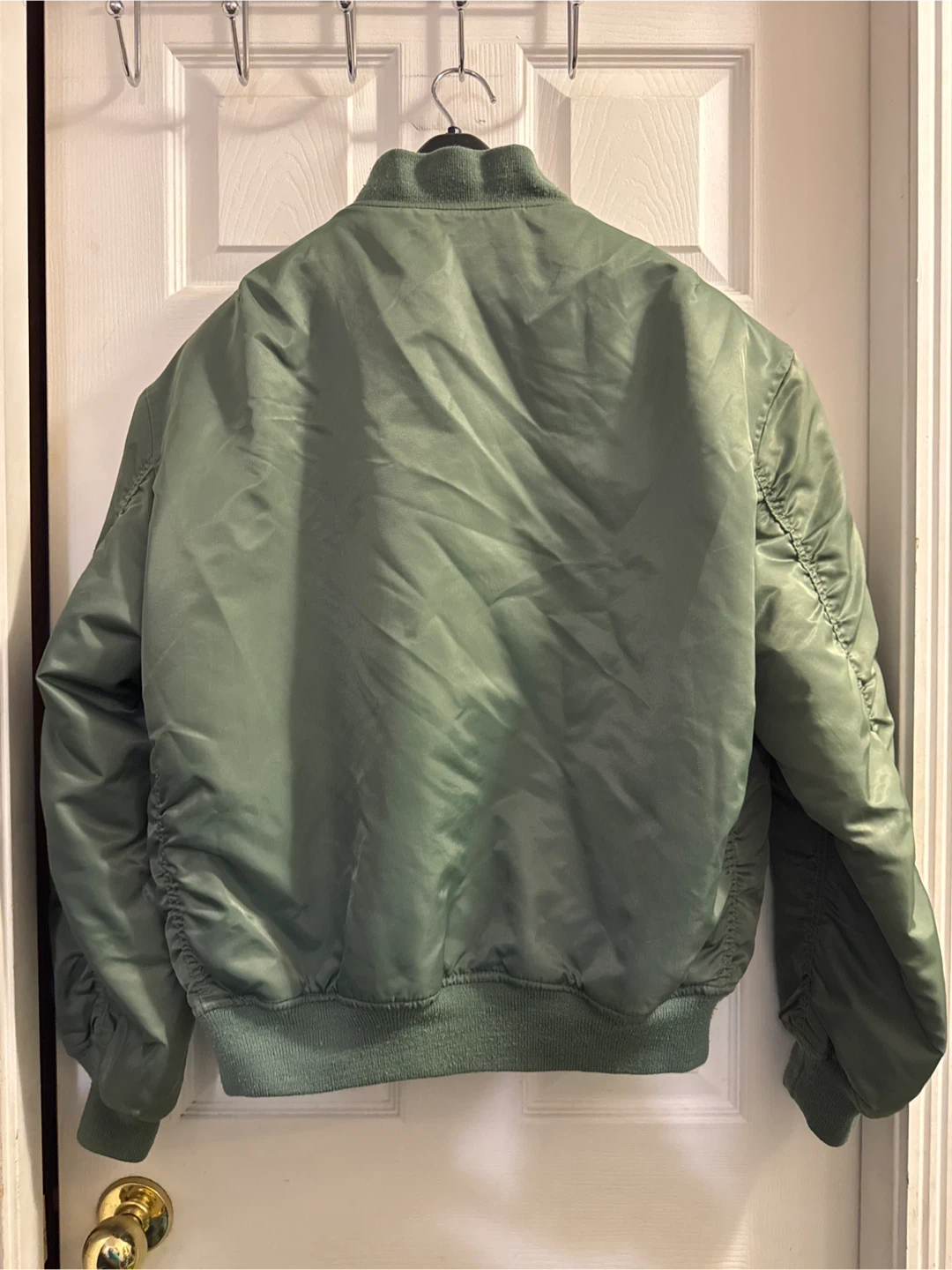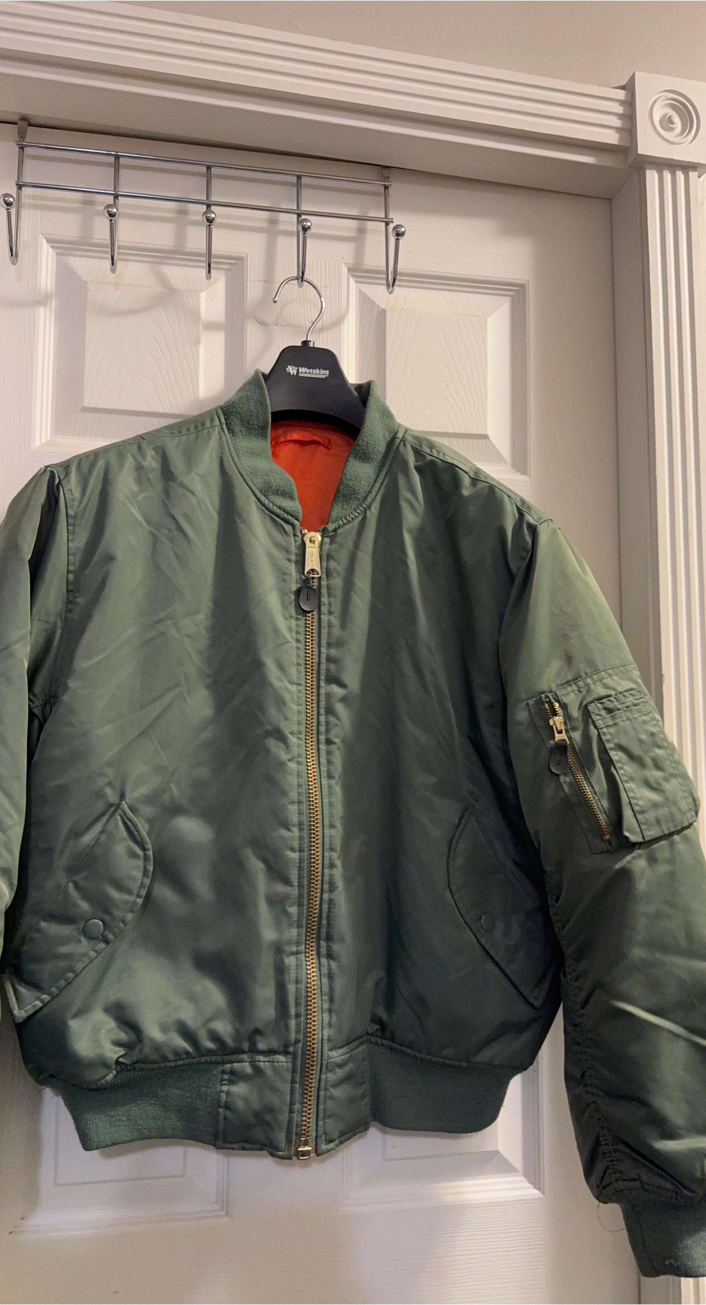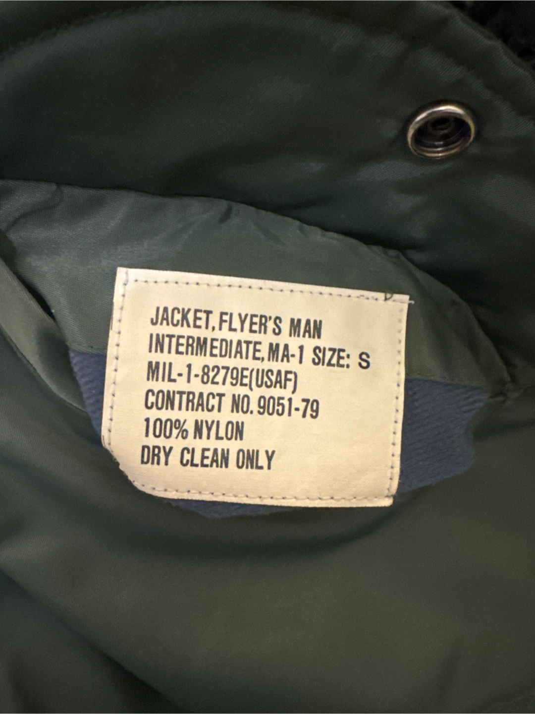 Selling an MA-1 Intermediate Flyer's Man jacket. It's a size small and made of 100% nylon. This classic bomber jacket is perfect for adding a touch of vintage style to your wardrobe. It's in great condition and ready for a new home!