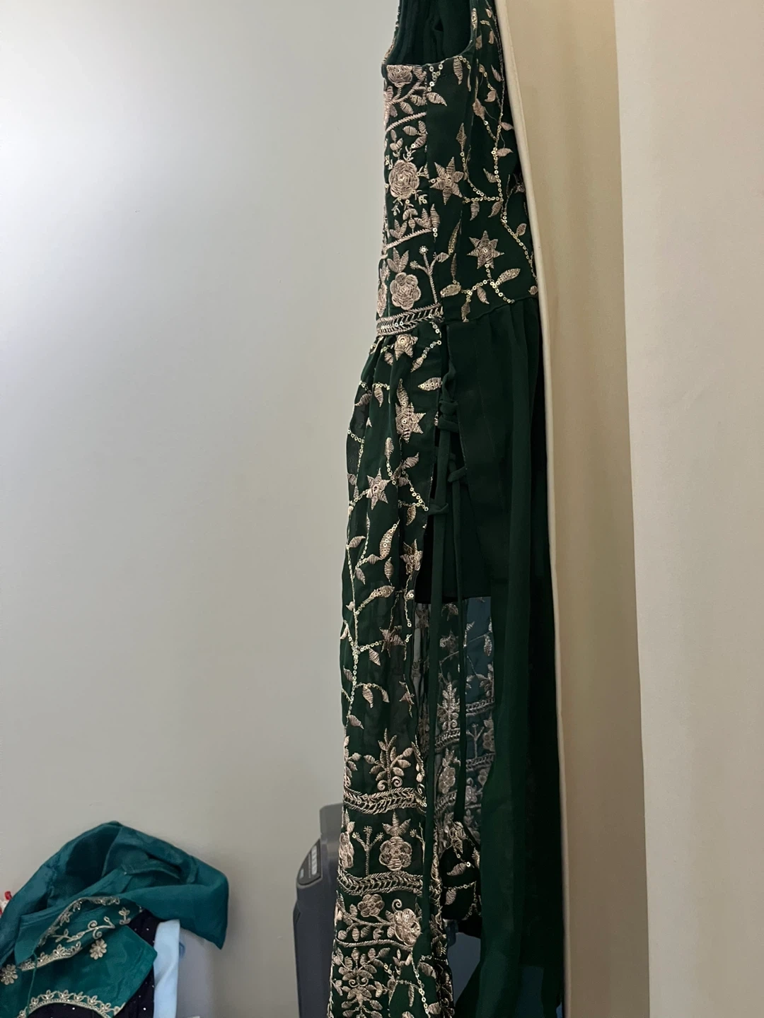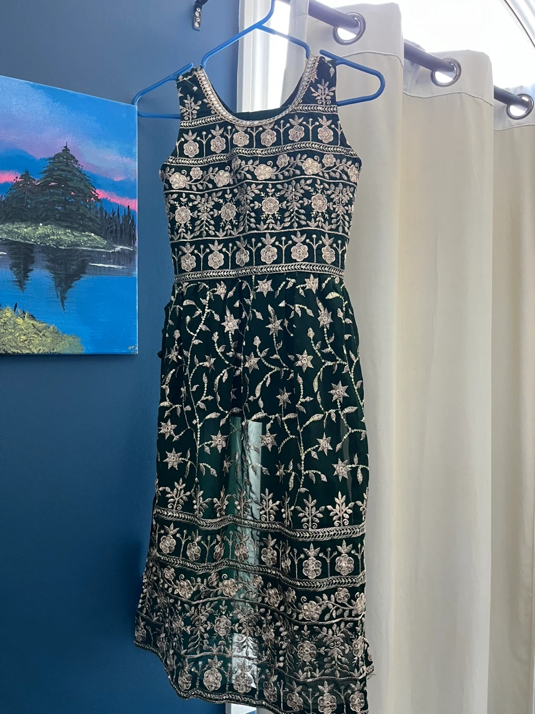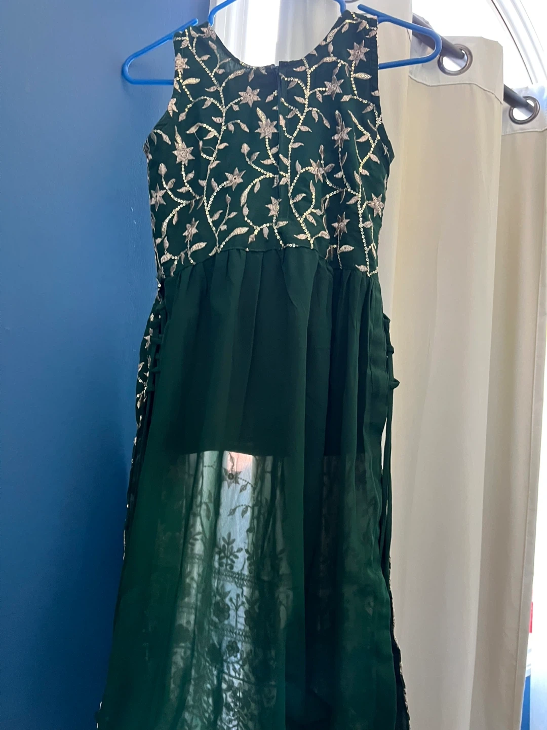 worn for a few hours, 3 pieces, pant,dress shirt scarf bought from huma boutique fit very slender height 4”9