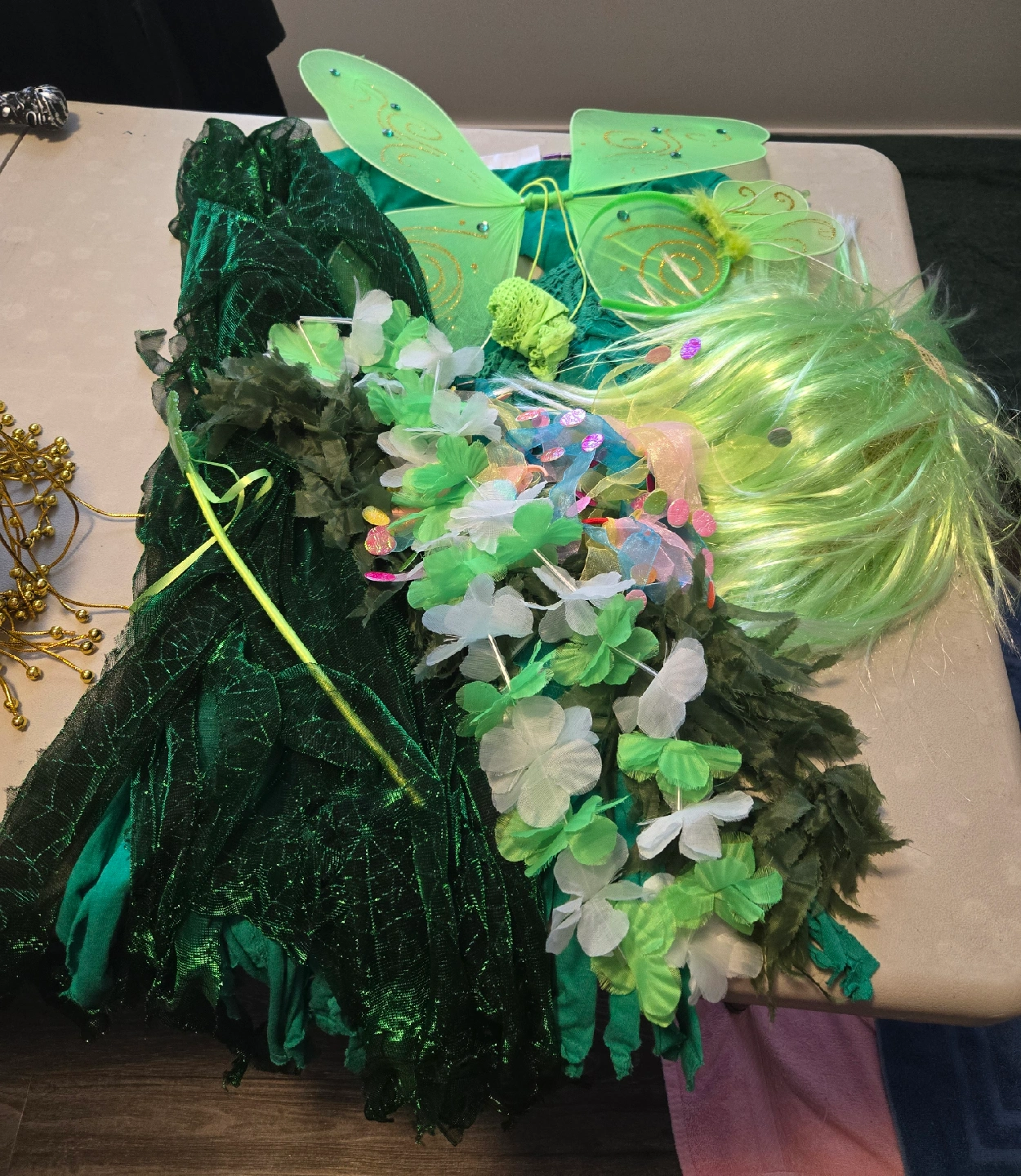 Selling a green fairy things! Includes a green cape, fairy wings, and a wig. Perfect for Halloween or dress-up!pick up SE flats