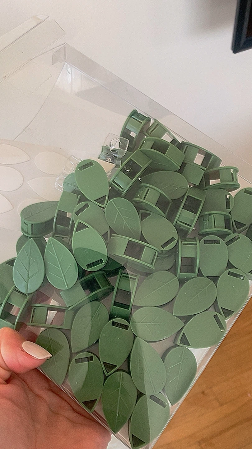 I'm selling a container of new green leaf cable clips! These are perfect for organizing cords and cables around your home or office. They're super cute and functional, keeping your space tidy with a touch of nature