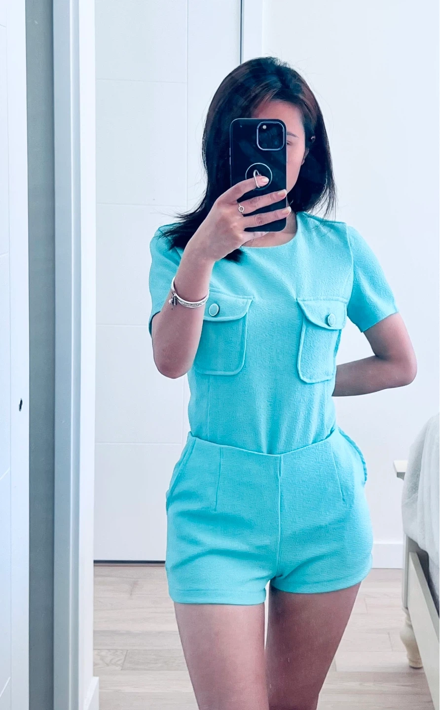 Size Xs It’s a beautiful bright green set of a top shirt with short pants Chic style to wear during the summer season 15 for the whole set