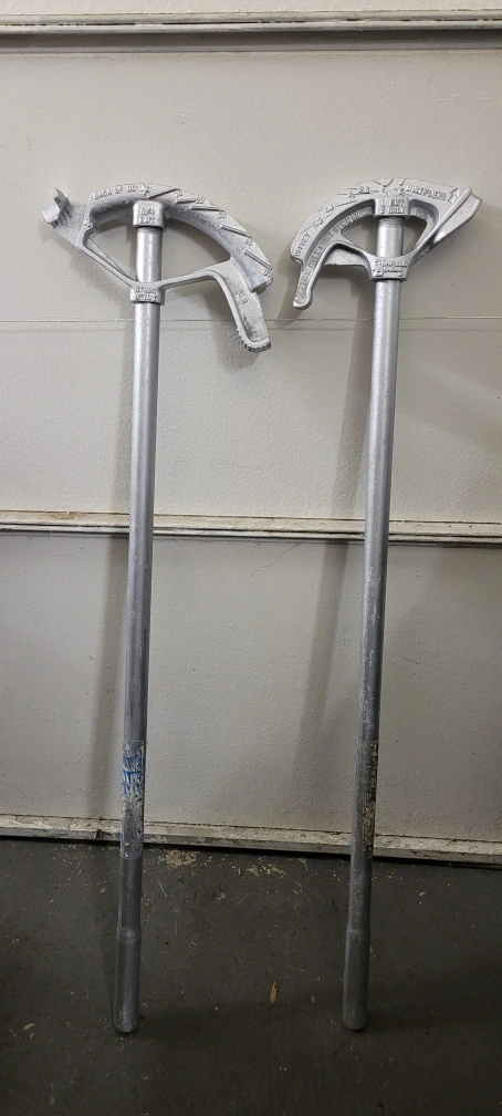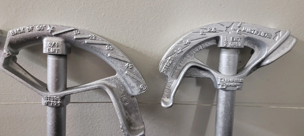 Selling a pair of conduit benders, one Greenlee and one Benfield. They're both in used condition but still have plenty of life left in them for your electrical projects. 3/4" and 1/2" pipe bender. 25 each or 40 for both
