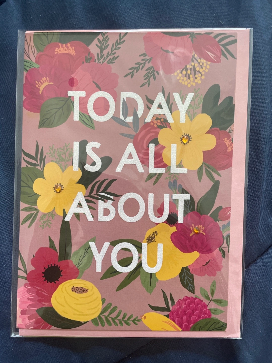 A lovely greeting card with a floral design that says "Today is all about you"! It's perfect for any special occasion. The card is from Magi Design and comes in its original packaging