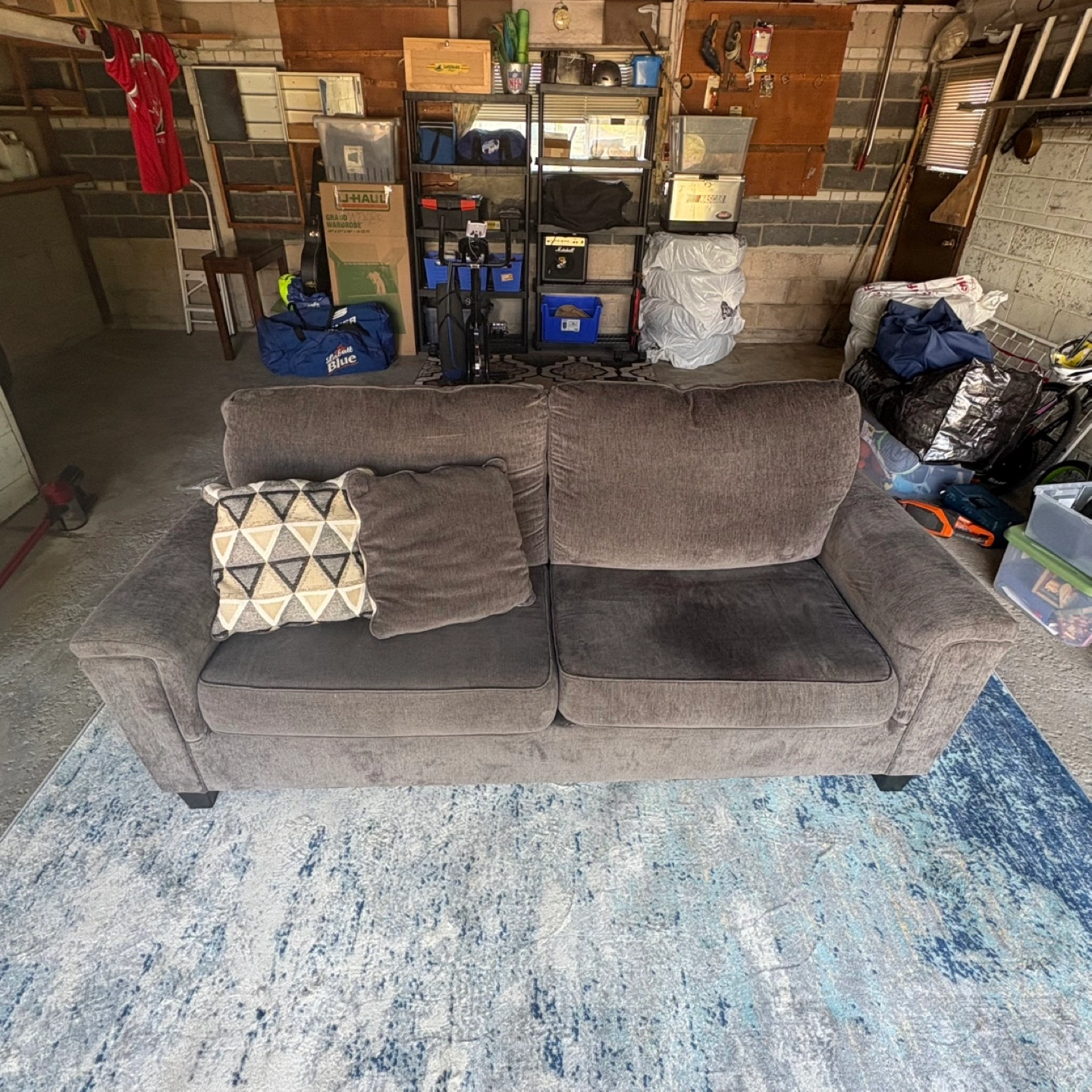 Selling a comfy two/three -seater sofa. It's in good condition / like new and would be great for a living room or den. Comes with the cushions pictured! From Ashley Furniture - Abinger collection - only 2 years old Can fit Three people