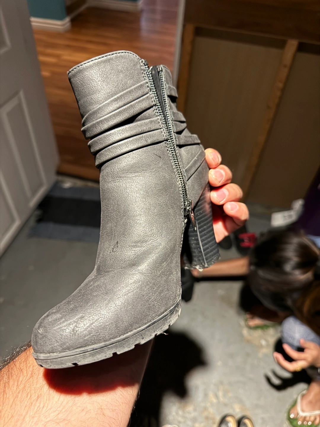 Selling a pair of grey ankle boots. They are in good condition and have a stylish design with a block heel. Perfect for adding a touch of elegance to any outfit! Skaimg shoes size 5 or 6 girls for 100$ Others 5 to 15$
