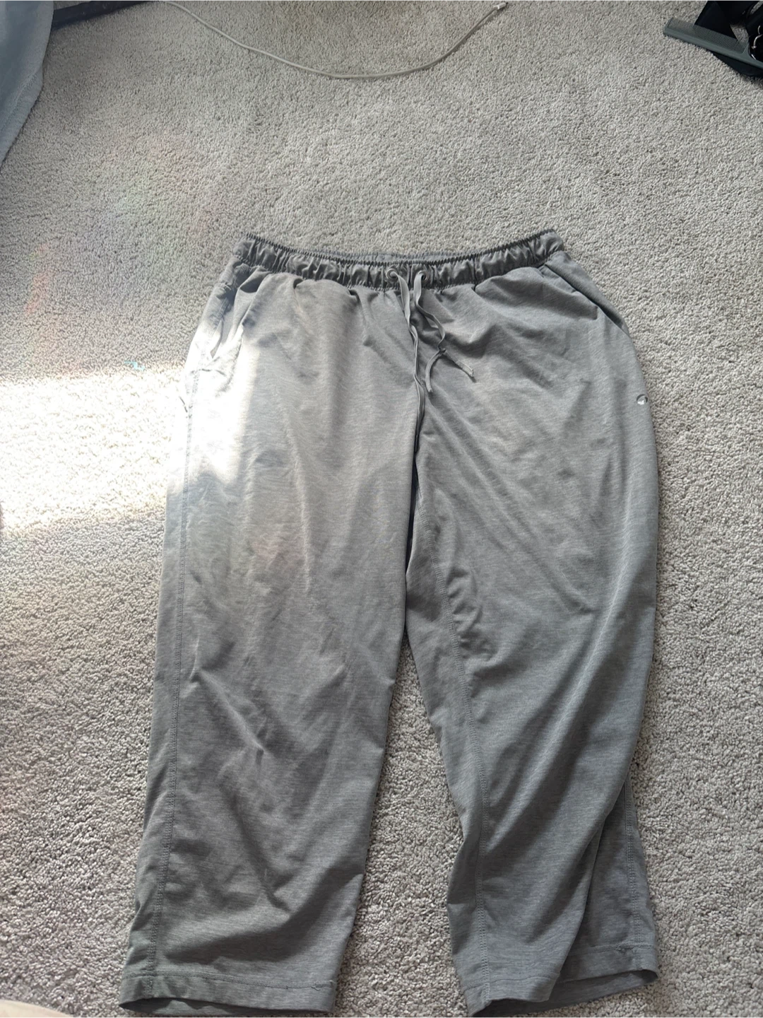 Selling a pair of athletic pants in a neutral grey colour. They're perfect for workouts or just lounging around. The pants are in great condition and ready for a new home!
