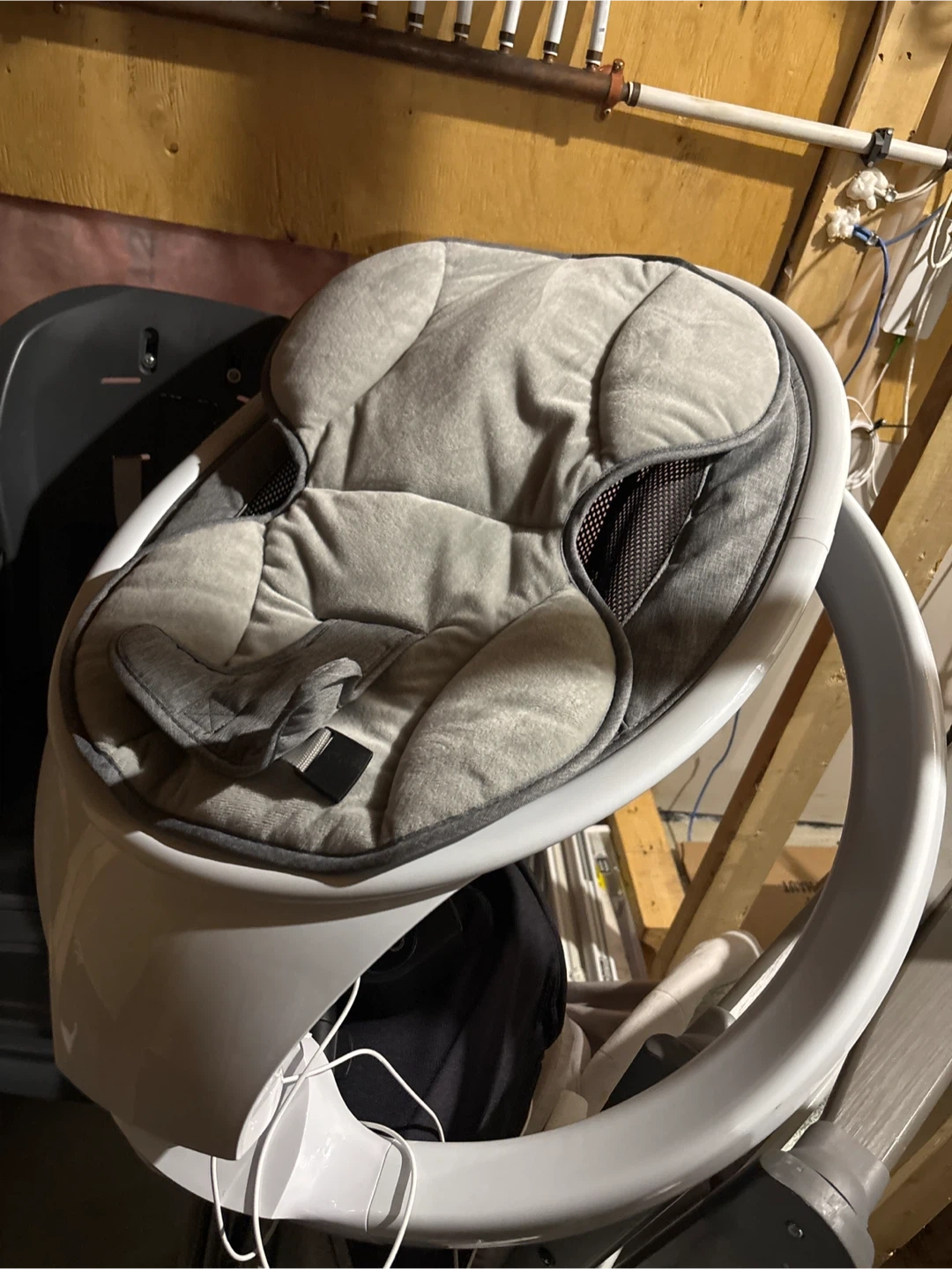 Used 1 time Selling a gently used baby swing in great condition! It's a cozy and soothing option for your little one. The swing features a comfortable grey seat and a sturdy white frame. Perfect for keeping your baby happy and relaxed