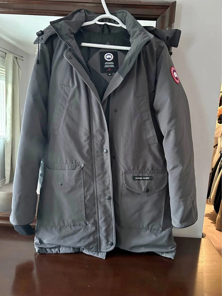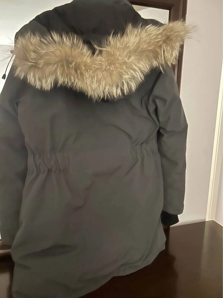 Grey Canada Goose down jacket for sale. Warm, authentic, and in excellent condition.