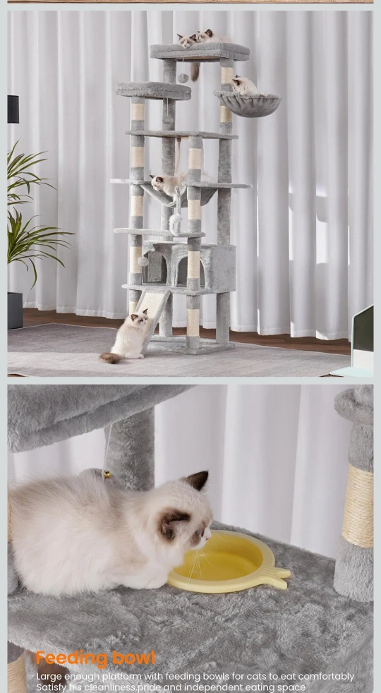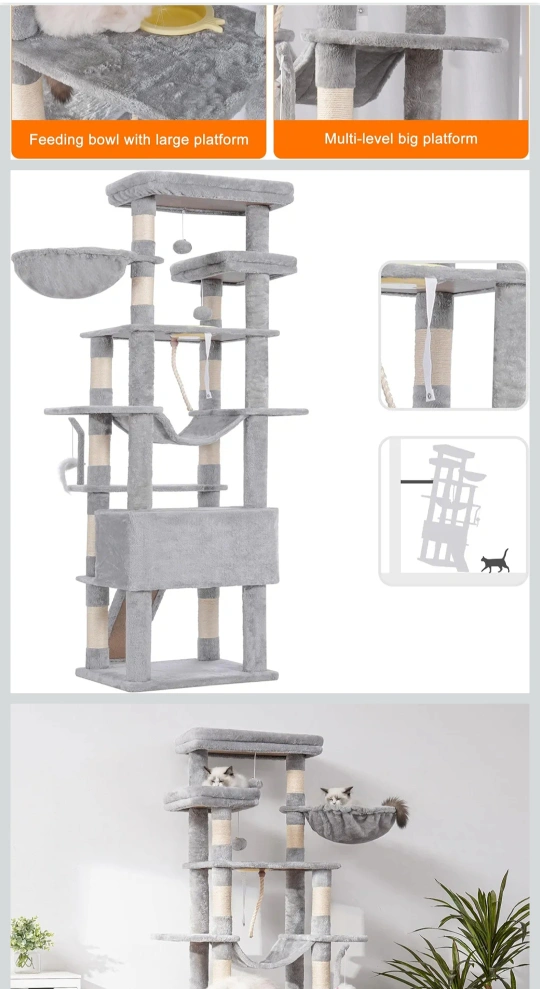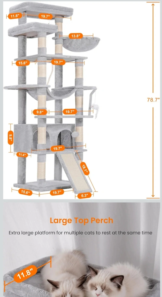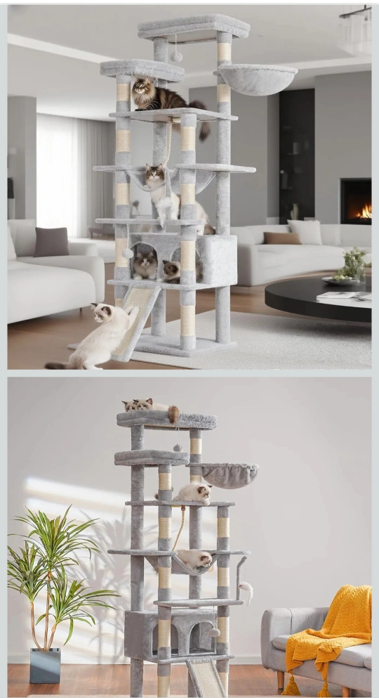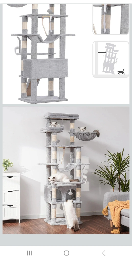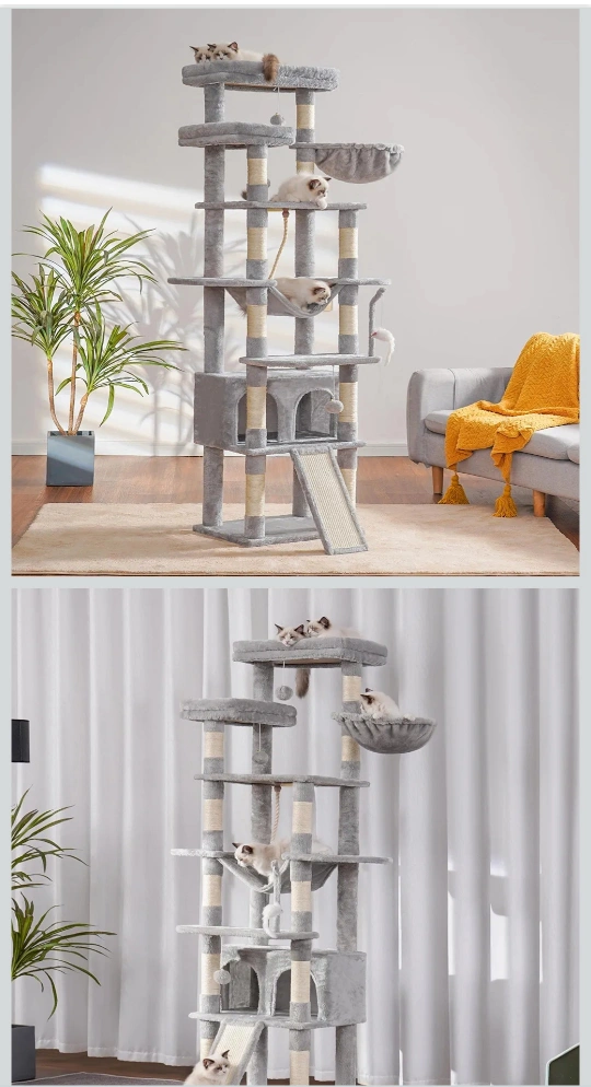 Fully Sealed and Brand New Heybly Tall Cat Tree for Large Cats 20lb Heavy Duty,78 inch Multi-Level Cat Tower for Indoor Cats,2 Widened Plush Perches Cat Condo with Scracthing Board and Big Caves,Light Gray HCT033W. Product Dimensions:50L x 40W x 200H cm Breed recommendation: All Breed Sizes Specific uses for product: Climbing, Jumping, Scratching Recommended uses for product: Indoor Material: Cardboard, Faux Fur, Sisal Mounting type: Floor Mount Payment mode : Cash Door Pick Up . Pick Up code : 136C