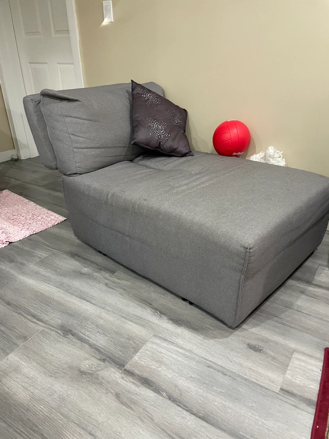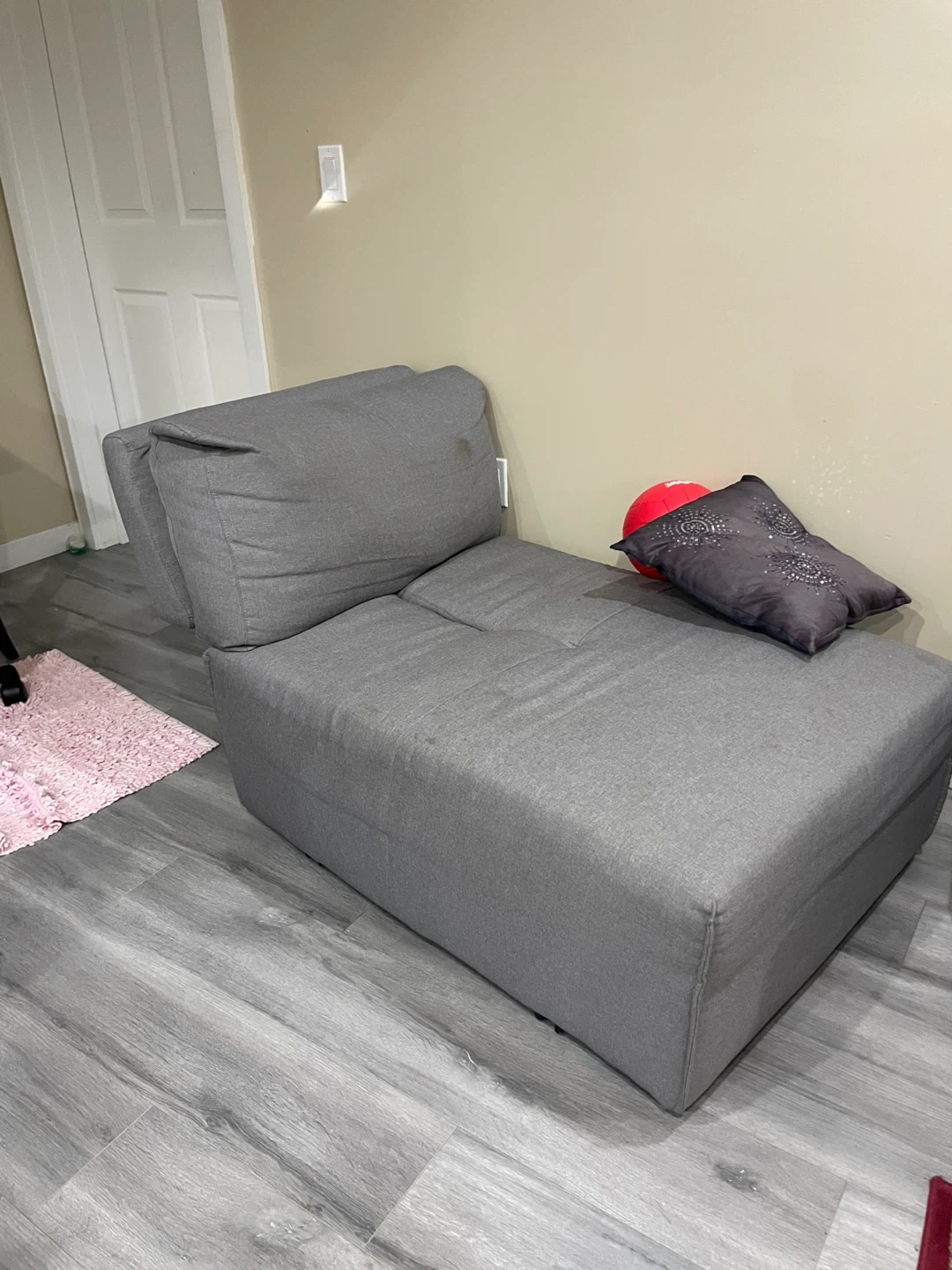 Looking to sell my chair! It's in great condition and super comfy. It easily converts from a chair to a full-size bed, perfect for guests or lounging around. The cover is a soft, durable grey material that's easy to clean. A great addition to any living room or den!