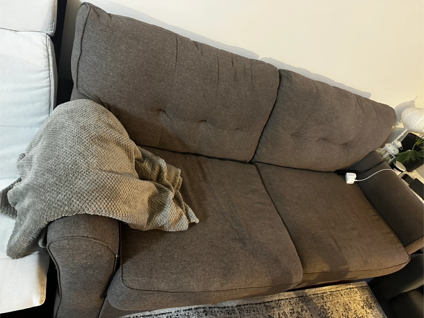 Selling a grey couch in good condition. ✅ Comfortable and supportive cushions ✅ Neutral grey color that matches any décor ✅ Clean, smoke-free home ⚠️ Has some minor scratches from a cat (reflected in price) I had it for 2.5 years Pickup only – located in downtown Edmonton. Message me if interested!
