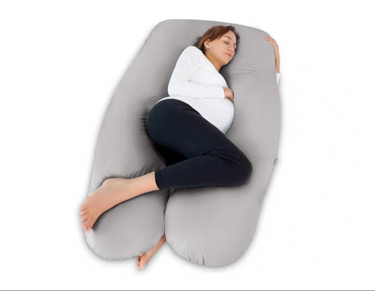 This is a full body pregnancy pillow in grey! It’s designed to provide support and comfort during pregnancy. It's in great condition and comes in its original box