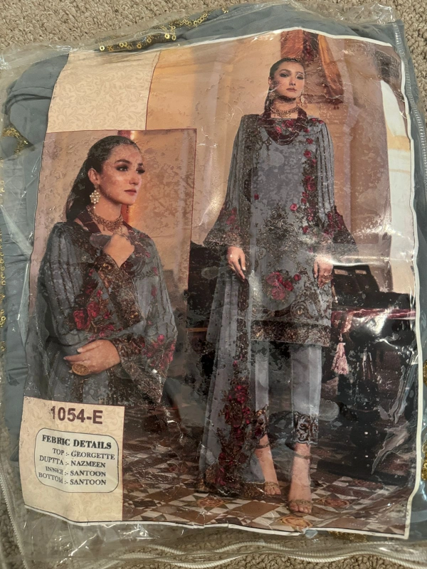I'm selling a brand new suit! The fabric details are: - Top: Georgette - Duptta: Nazmeen - Inner: Santoon - Bottom: Santoon