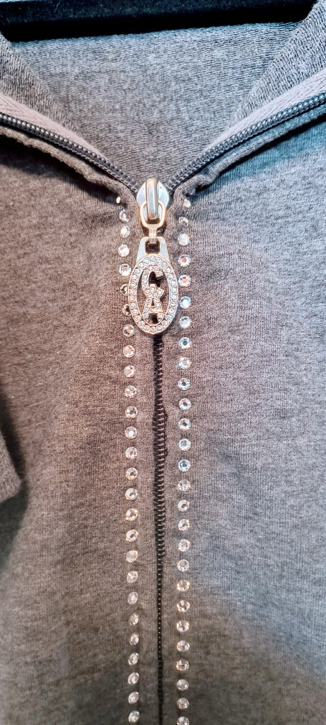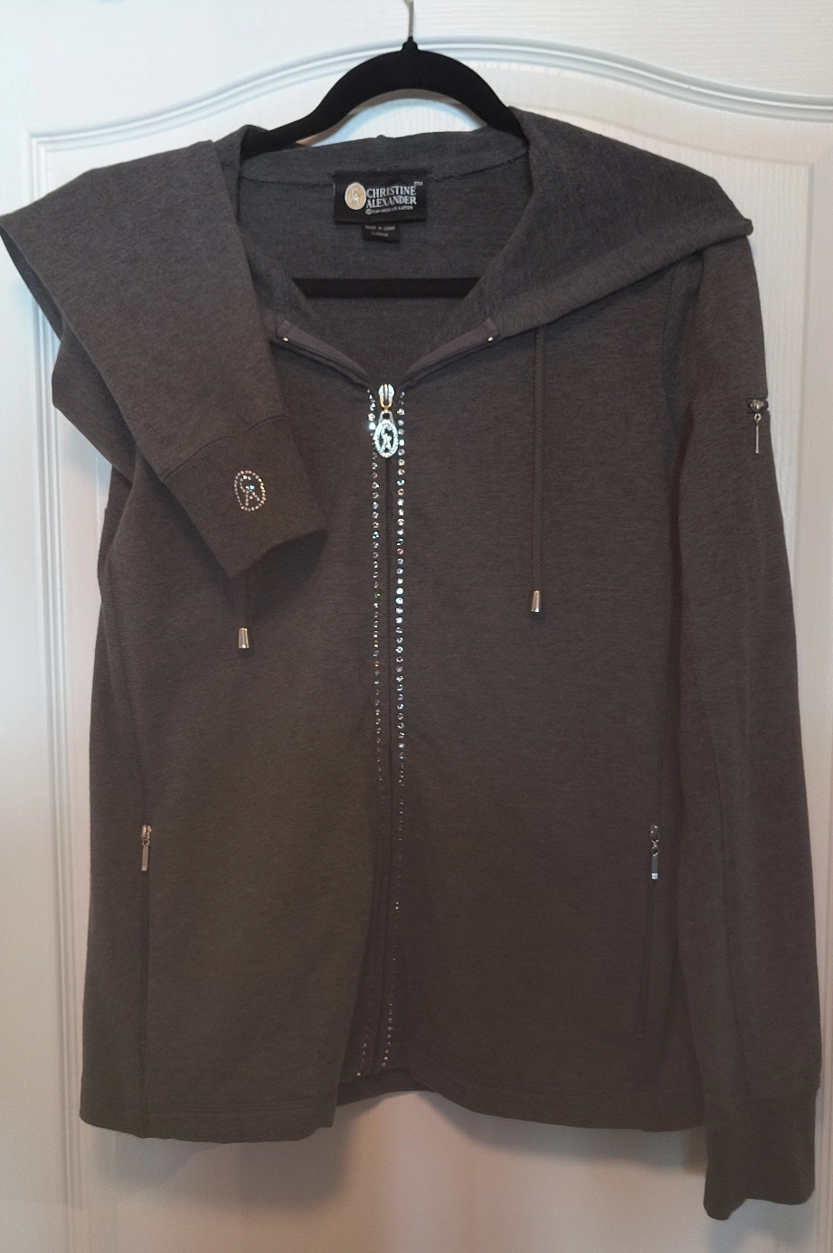 $50.00 NEW Women's Christine Alexander Swarovski Crystal Grey Hoodie & Pant Set, Loungewear, Tracksuit. Size: Large