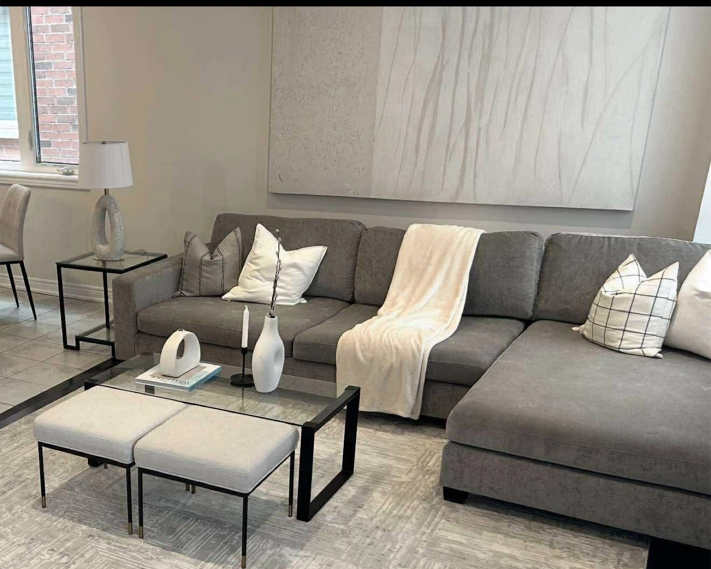 Selling a comfortable grey sectional sofa. It comes with the pillows shown in the pictures. It's in great condition and would be perfect for a living room or family room. Message me if you're interested! ALL CUSHIONS ARE REMOVABLE WITH ZIPPERS COUCH SIZE 10 feet by 6 feet