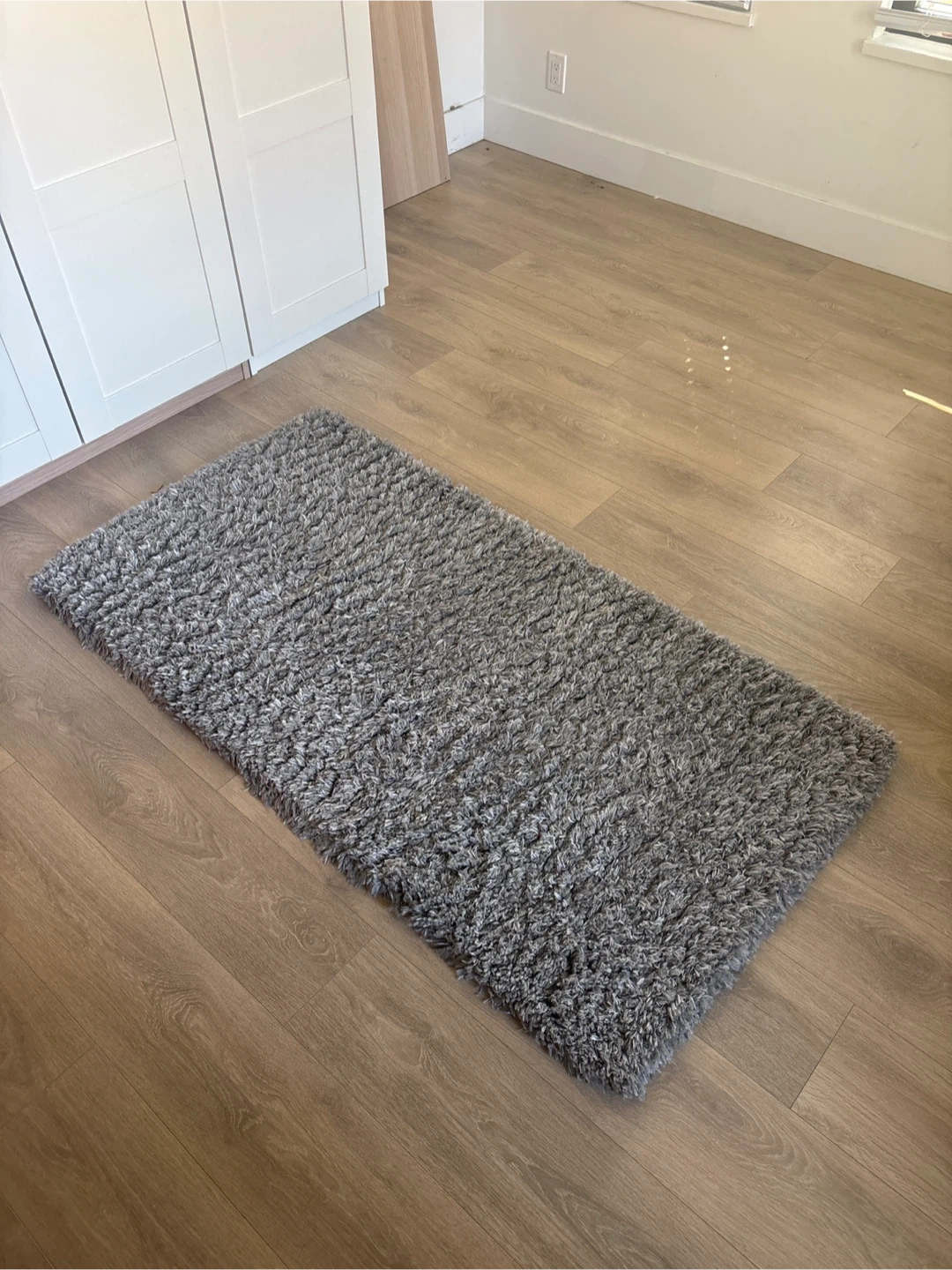 Selling a grey shag rug. It's in great condition and would be perfect for adding some cozy texture to any room