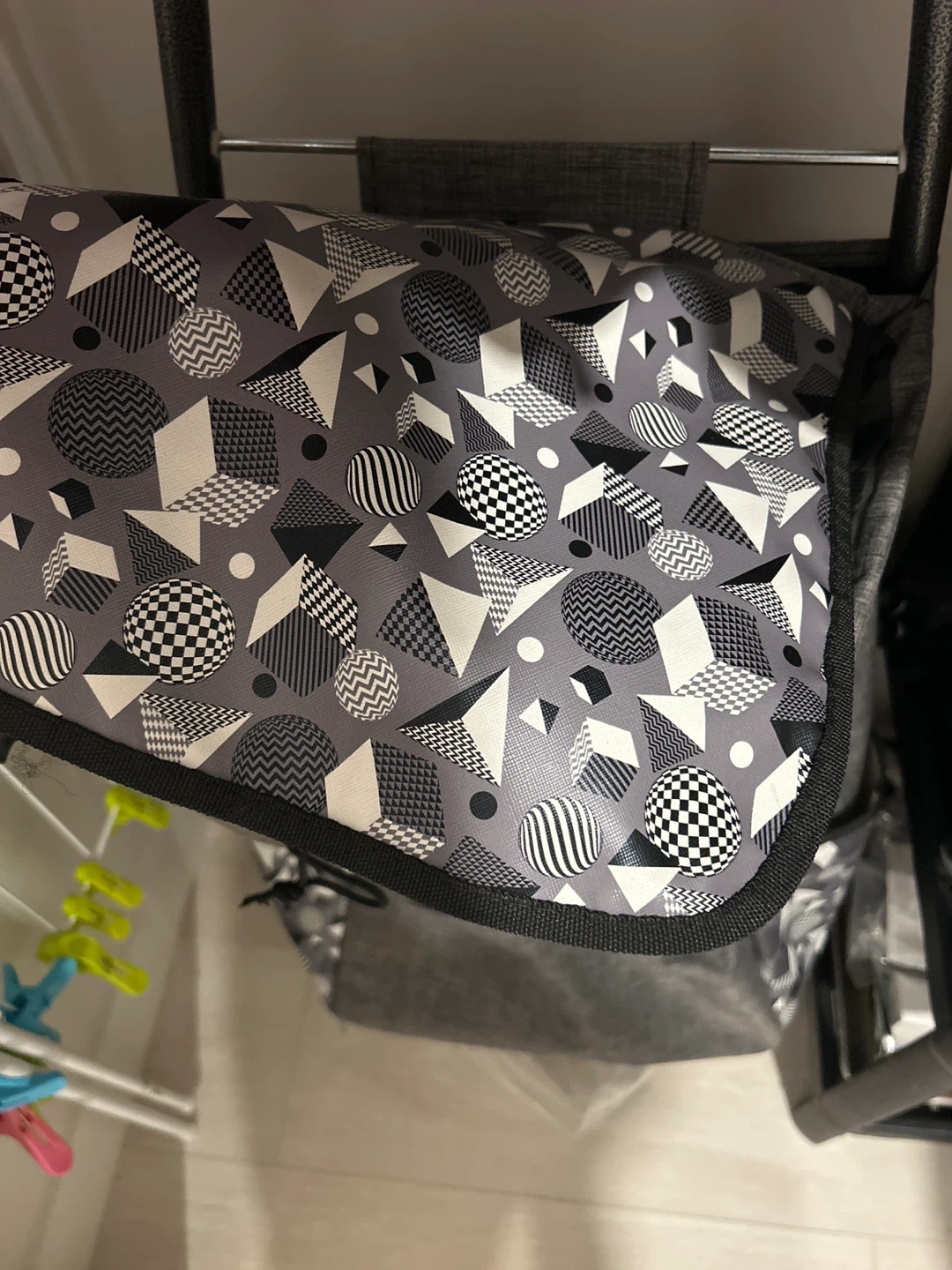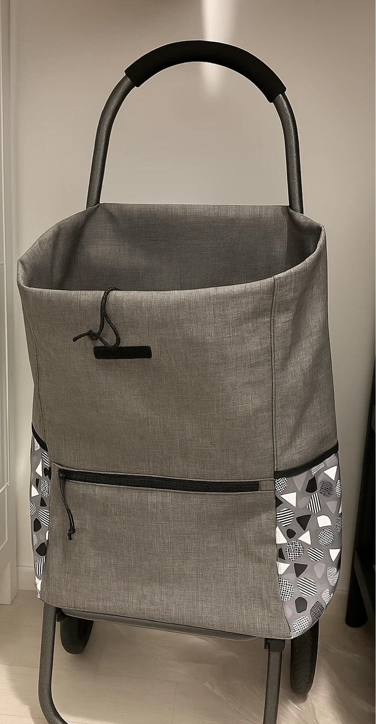 Selling a handy grey shopping cart with wheels! It's in great shape and ready to help you with your grocery runs or trips to the farmers market. The cart features a stylish grey fabric with a black and white patterned accent. Cash only Pick up only please