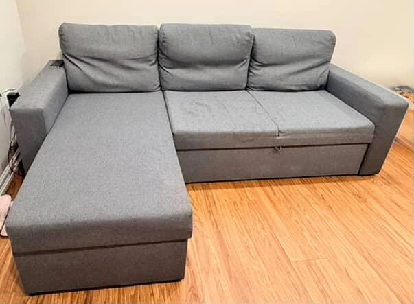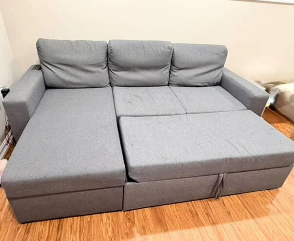 Selling a grey sleeper sofa with a chaise lounge! It's in great condition and perfect for a living room or guest room. The sofa can be converted into a bed, and it also has storage space underneath. The dimensions are: - 151 cm (59 1/2") x 230 cm (90 1/2") sofa - 204 cm (80 3/8") x 140 cm (55 1/8") bed price is negotiable.
