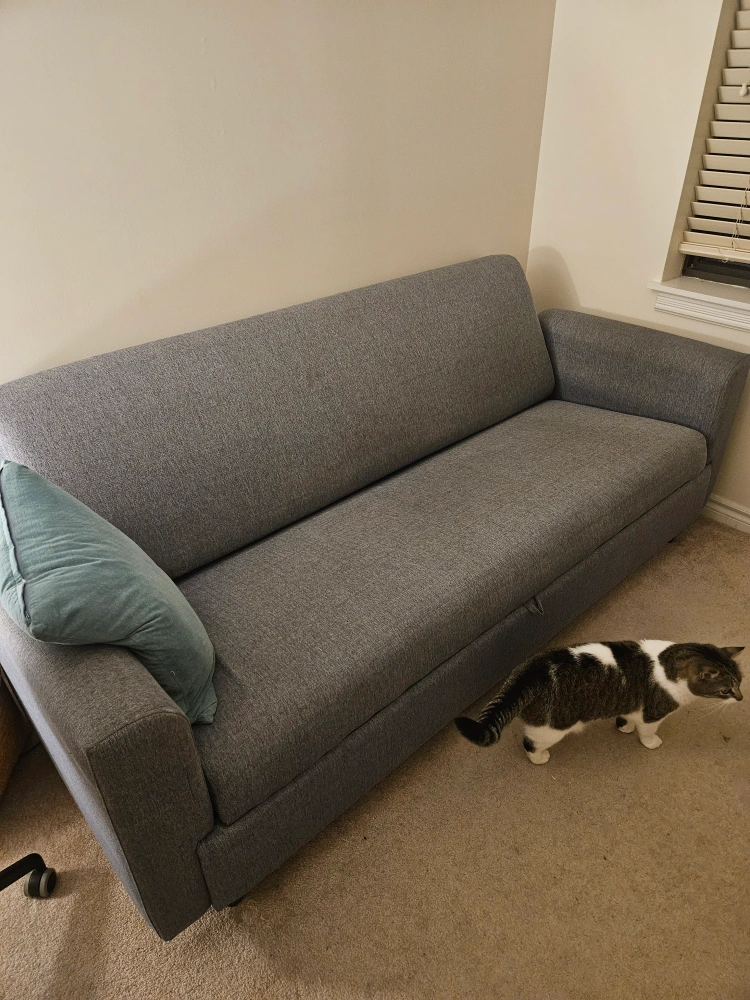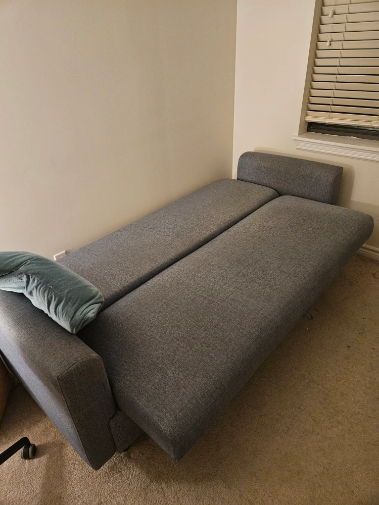 Selling a comfy grey sofa bed! It's in great shape and perfect for guests or small spaces. It easily converts from a sofa to a bed, making it super versatile for any room