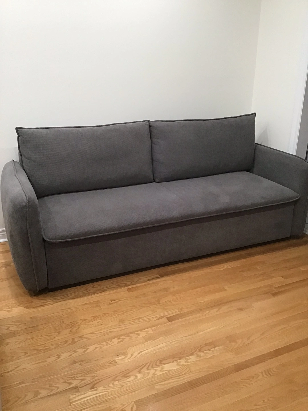 Selling a comfy grey sofa bed! It's in great condition and perfect for guests or small spaces. The sofa easily converts into a bed, making it super versatile for any home. It has a modern look that would fit in with any decor. Feel free to message me with any questions! Lightly used.