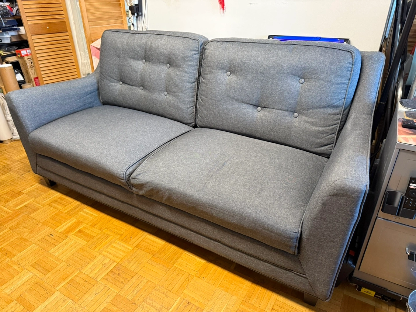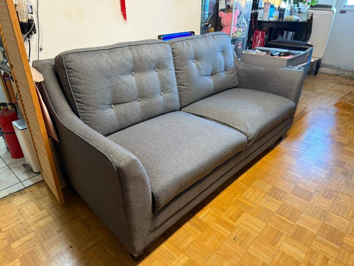 For Sale: Comfortable Grey Sofa This well-maintained grey sofa is in excellent condition and ready to be a cherished addition to your new home. Ideal for those seeking an affordable seating solution, it is suitable for both pets and smoke-free environments. Its spacious design makes it perfect for filling up a living room or den, providing a stylish and comfortable seating option.