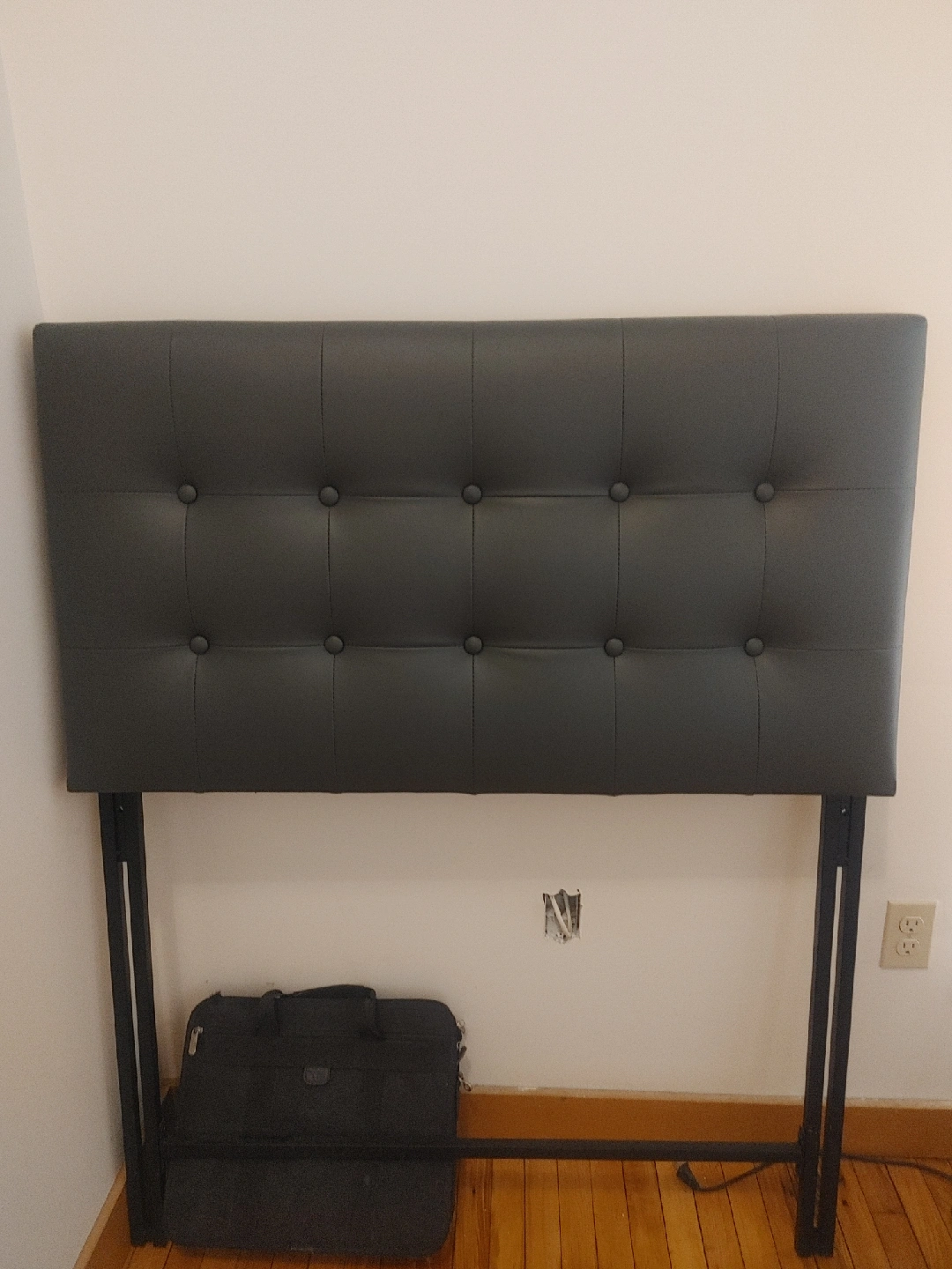 Selling a grey upholstered headboard. It's in great shape and would look lovely in any bedroom. The headboard features a button-tufted design for a touch of elegance