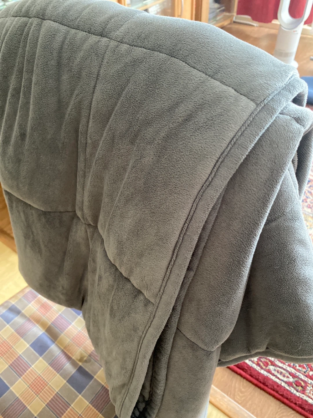 Selling a grey weighted blanket! It's in great condition The weight is evenly distributed and it's made of a soft, plush material. Never really used.
