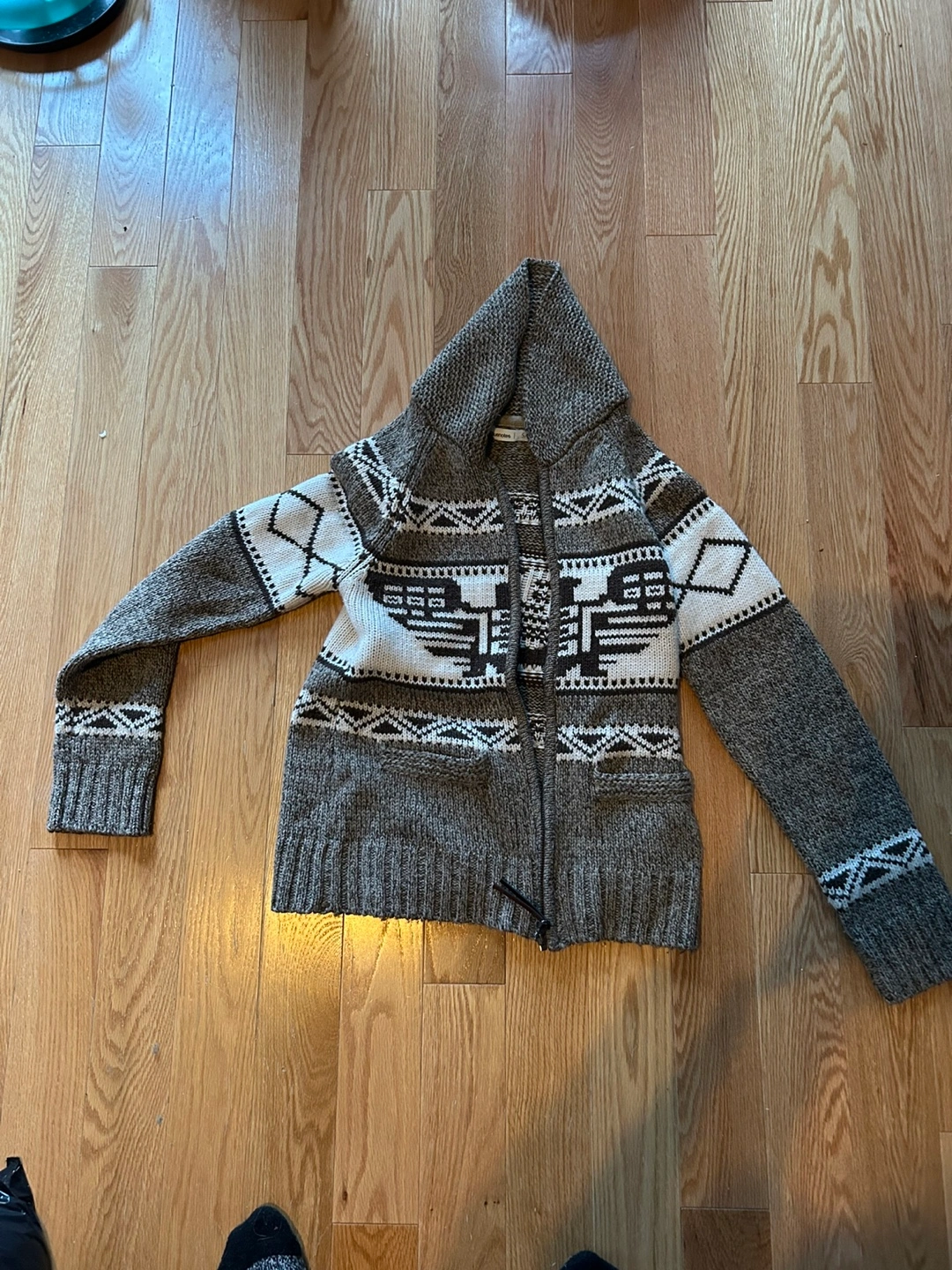Women's zip-up cardigan. Long sleeves, ribbed cuffs and hem.