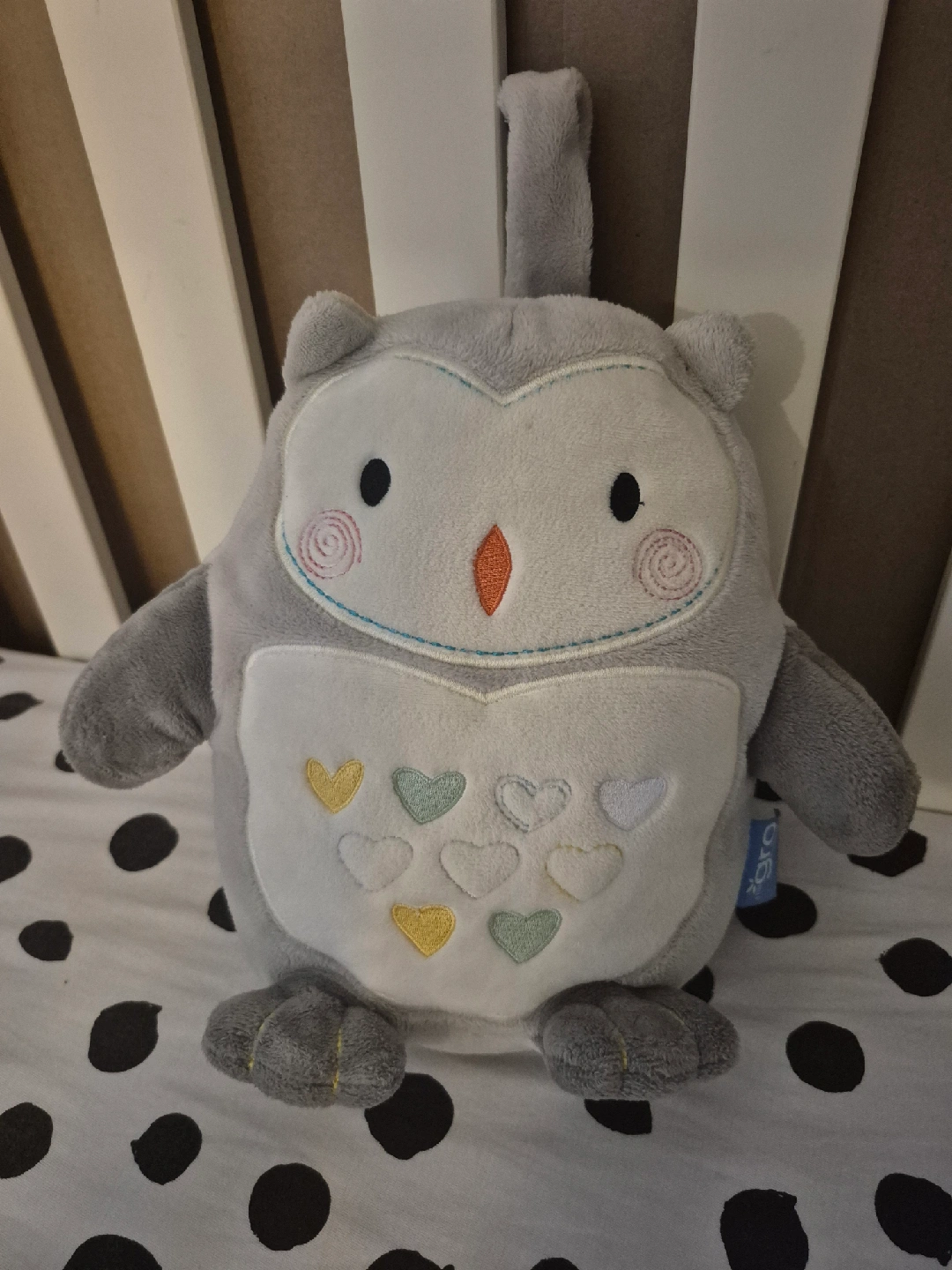 It's in great condition and ready to help your little one drift off to dreamland! It's a soft, plush toy that can be easily attached to a crib or stroller. AA Battery operated, with on off switch. 3 light settings and 4 different sounds options. There is also a motion/sound sensor that will restart the noise/music if yoy baby starts to rustle around. Smoke and pet free home.
