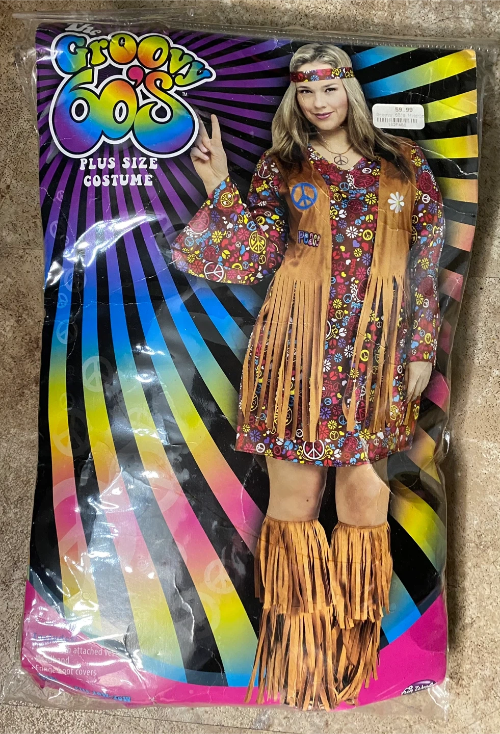 Get ready to boogie with this Groovy Go Go's hippie costume! It's an XL costume that includes the dress with attached vest, boot covers, and some accessories. Perfect for a fun retro look! Pick up in Chestermere.