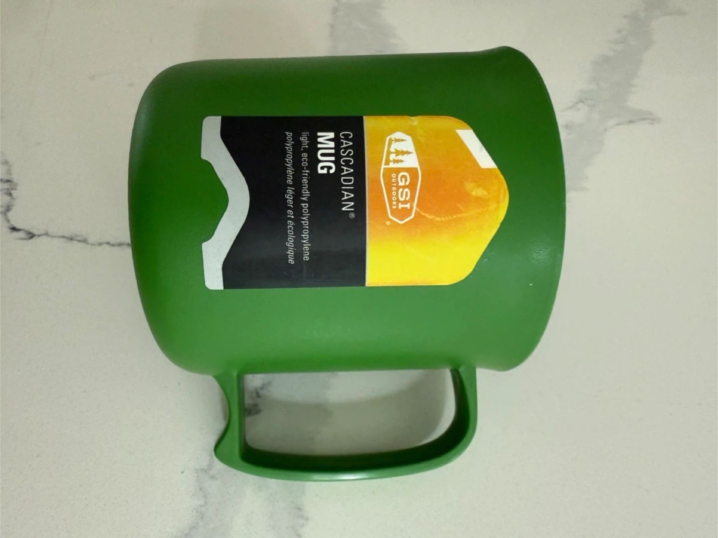 Selling a green GSI Outdoors Cascadian mug. It's made of light, eco-friendly polypropylene. Perfect for camping or everyday use!