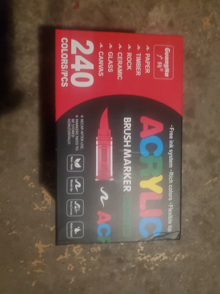 Selling a brand new set of GuangNa brush acrylic markers! This set comes with 240 colours and can be used on a variety of surfaces including paper, timber, rock, ceramic, glass, and canvas. These brush markers have a flexible tip and a free ink system, perfect for any artist!