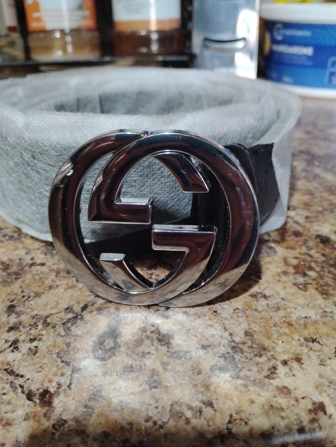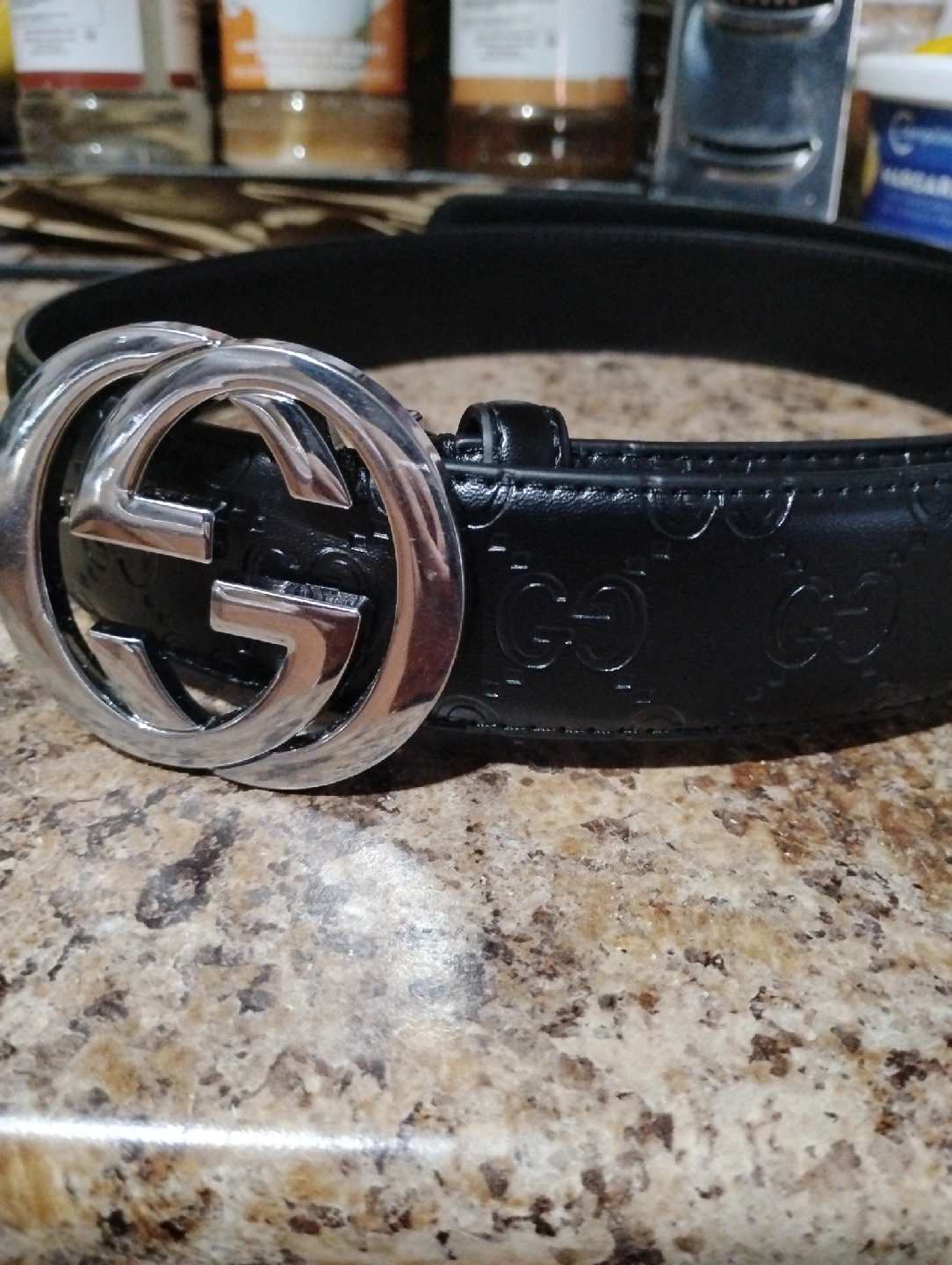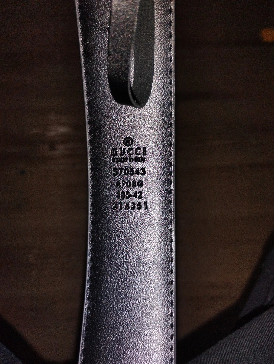 Selling a stylish Gucci belt in black leather. It features the iconic GG logo. The size is 105-42. Comes with the original box!