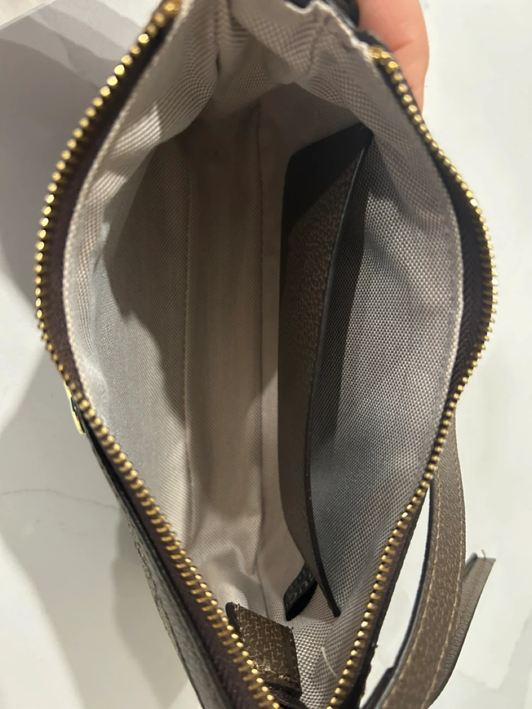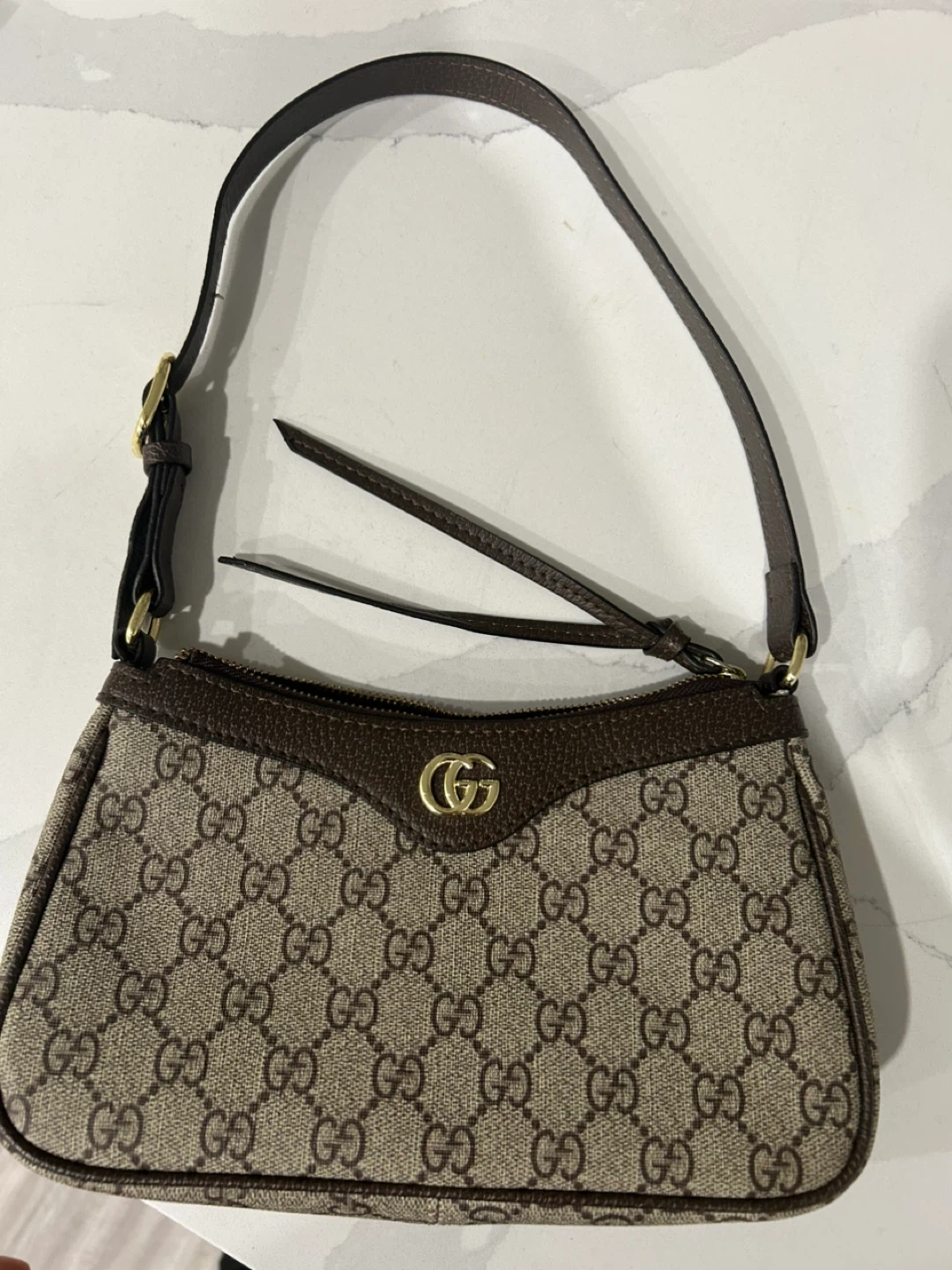 Selling a cute Gucci mini baguette bag! It features the classic GG Marmont pattern in brown. Perfect for everyday look. The bag measures approximately 9 inches in length. It's in great condition! Got it gift so not sure if it’s authentic, price reflects.