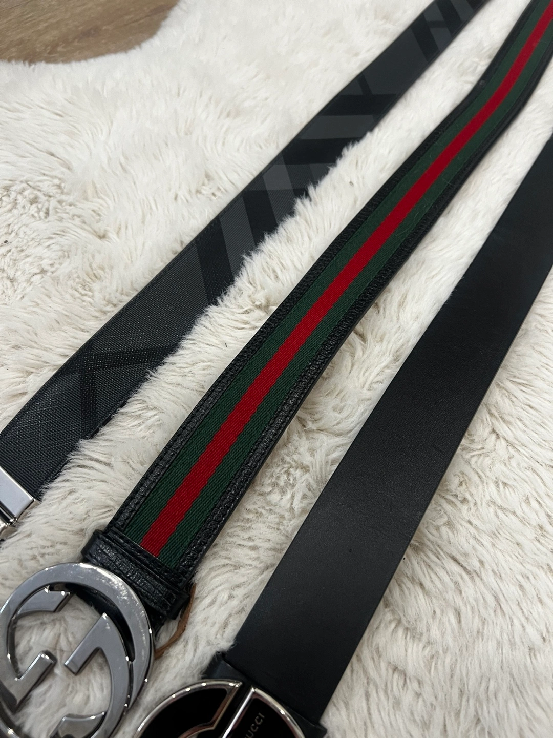 Selling a set of three belts! Included are two Gucci belts and one Burberry belt. All are in great condition and ready for a new home!