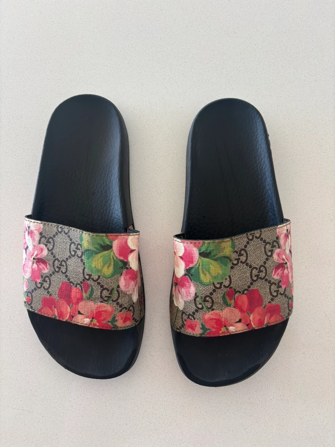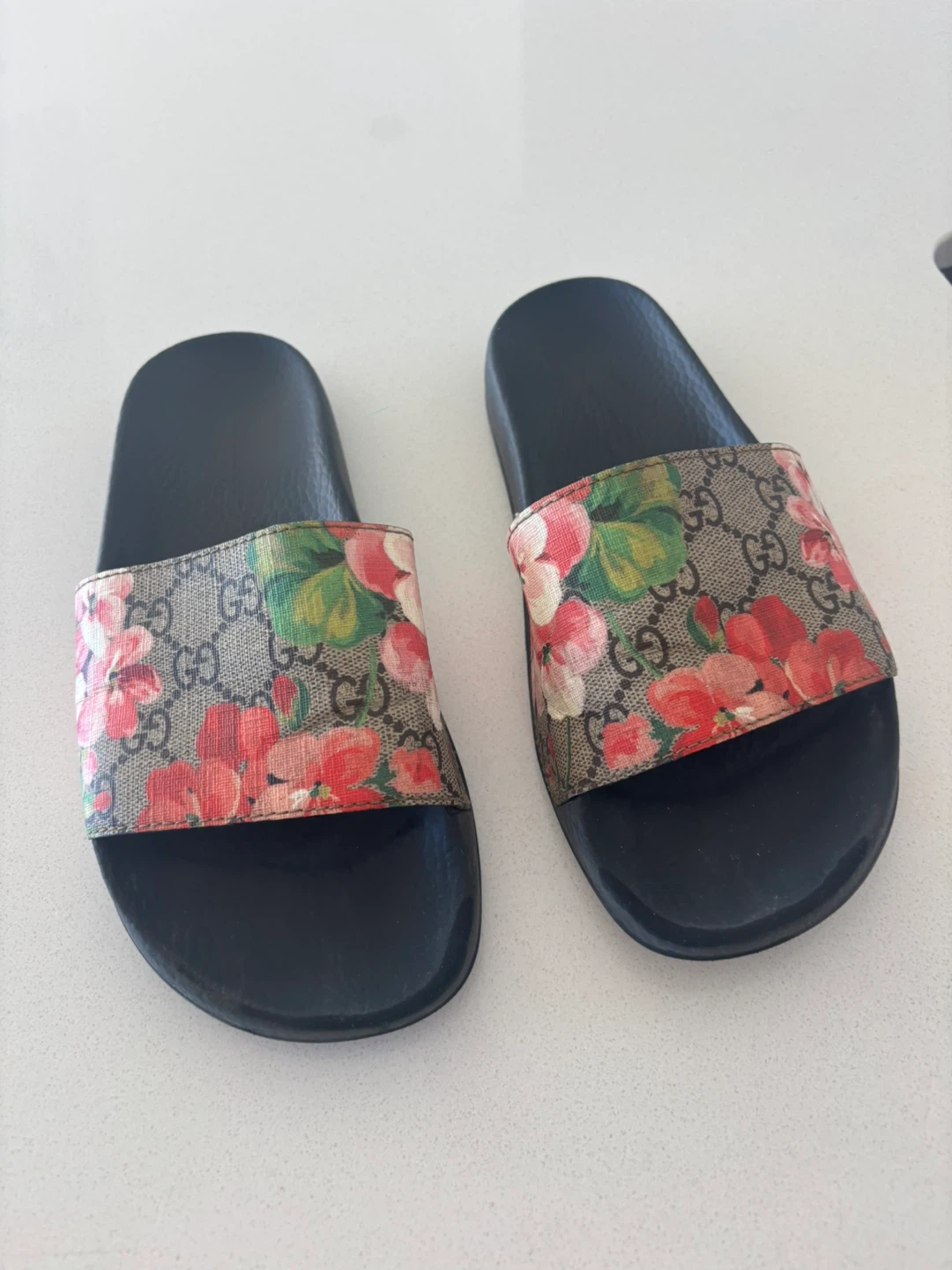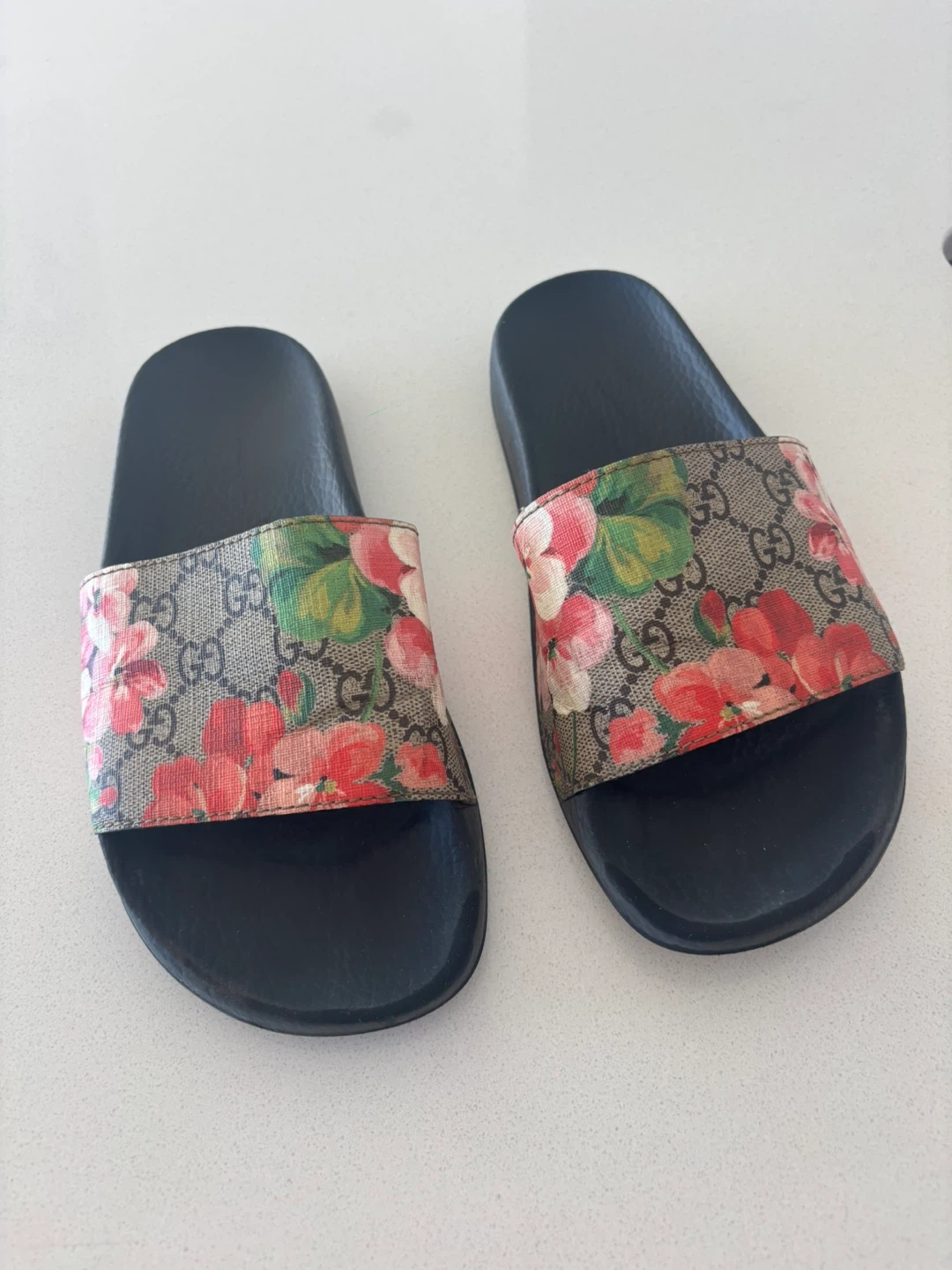 Selling a pair of Gucci slides with a floral design. They are in great condition and perfect for summer! Size 8.